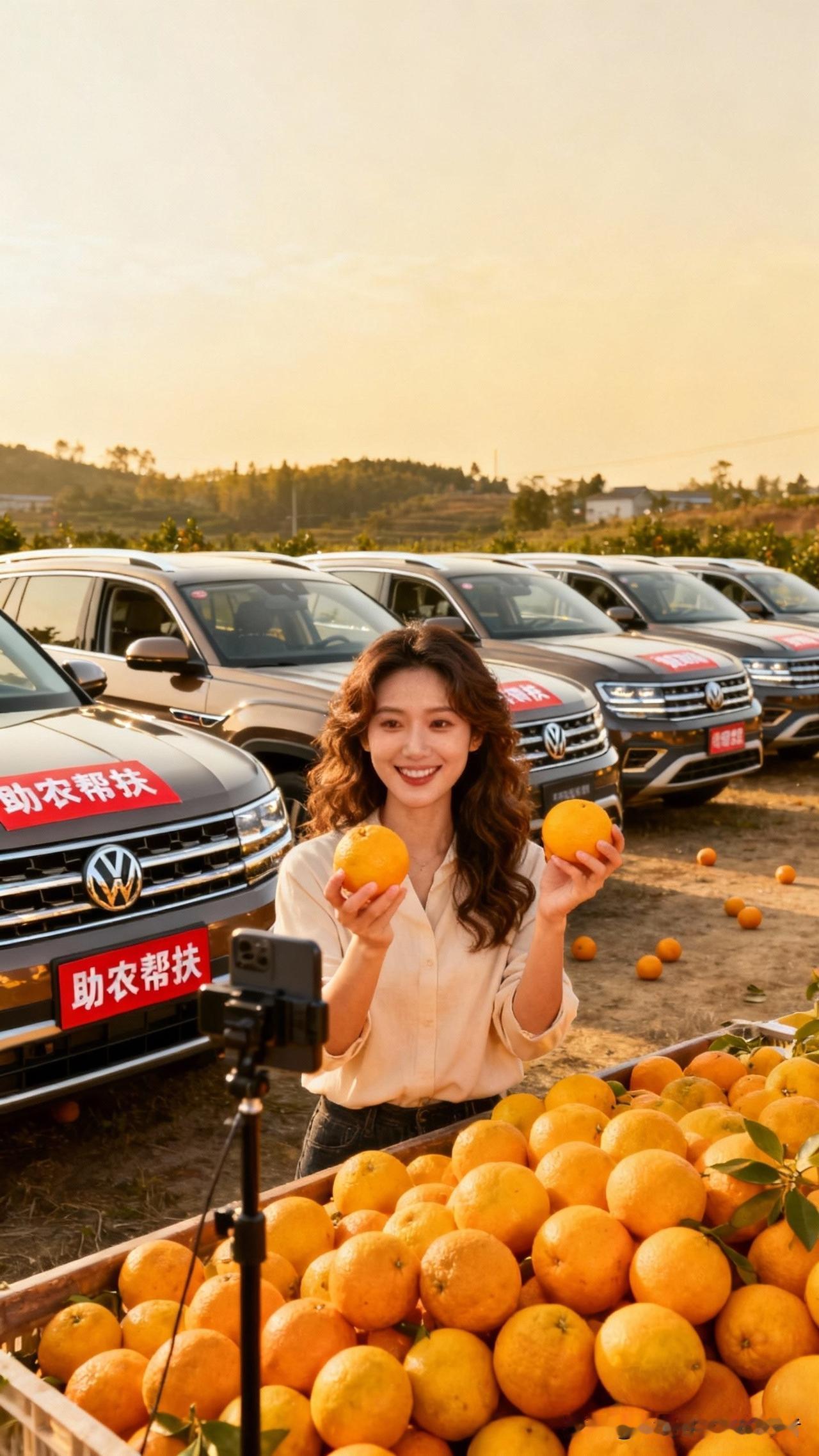 那周末,我们途昂Pro车友会二十多辆“超导金”列队驶入山村。正值橘子丰收季,果农却为销路发愁。村口空地上,一位网红正对着手机直播带货,但观看人数寥寥。 我们当即决定助力。车队在果园旁整齐停靠,21英寸星芒轮毂在阳光下熠熠生辉,悬浮式熏黑尾灯点亮后宛如科技展馆。车友们纷纷下车,以壮观的超5米车身矩阵为背景,加入直播镜头。 我打开15英寸中控屏连上直播,借助MOS 4.0智能系统实时互动。车友们一边品尝甘甜的橘子,一边通过社交平台分享。短短两小时,直播间人数突破十万,滞销的橘子被抢购一空。 返程时,每辆途昂Pro的2427L后备箱都装满了助农橘子。这趟旅程,让全境实力派不止征服了崎岖山路,更见证了科技与爱心的完美融合。
