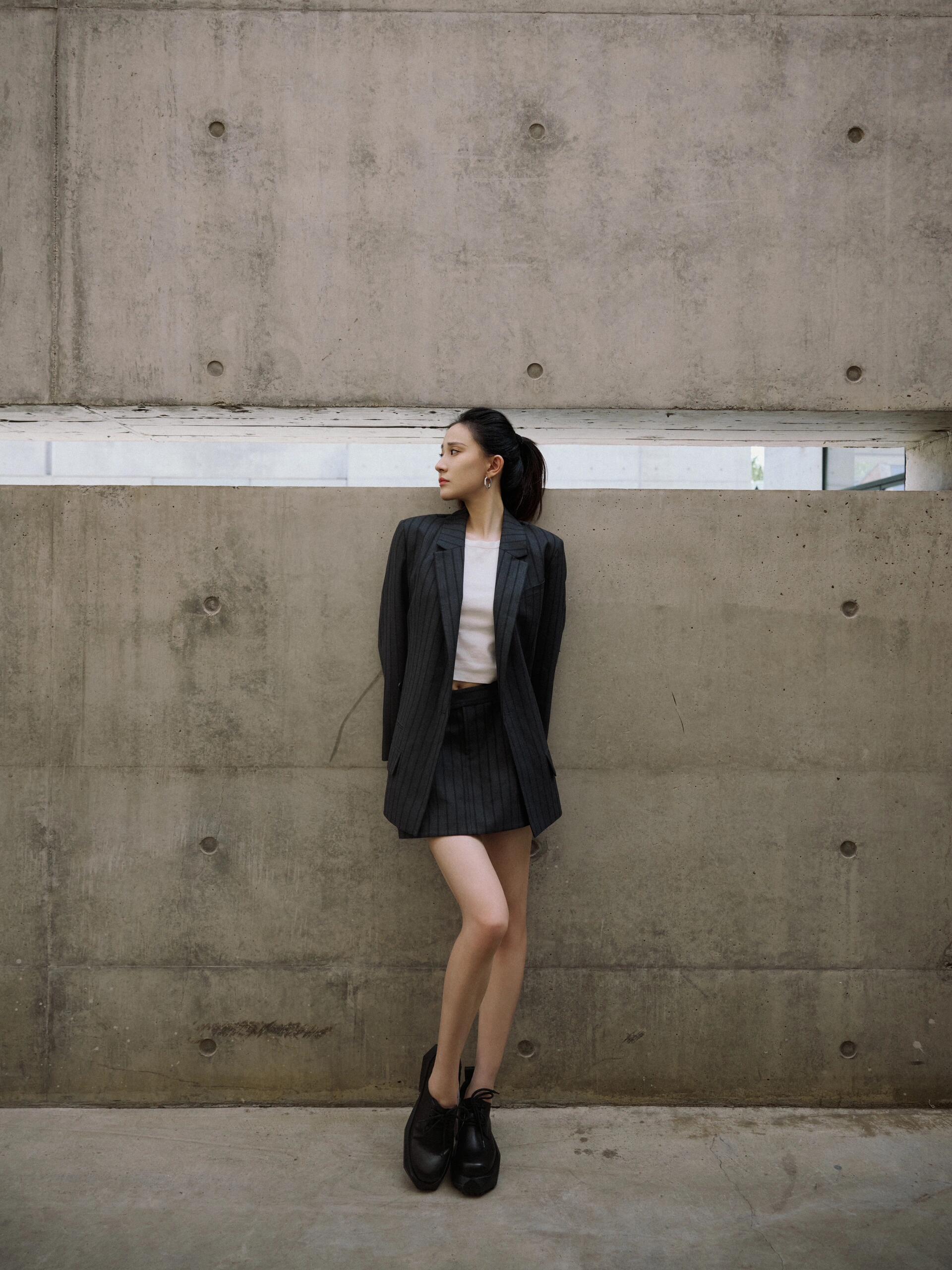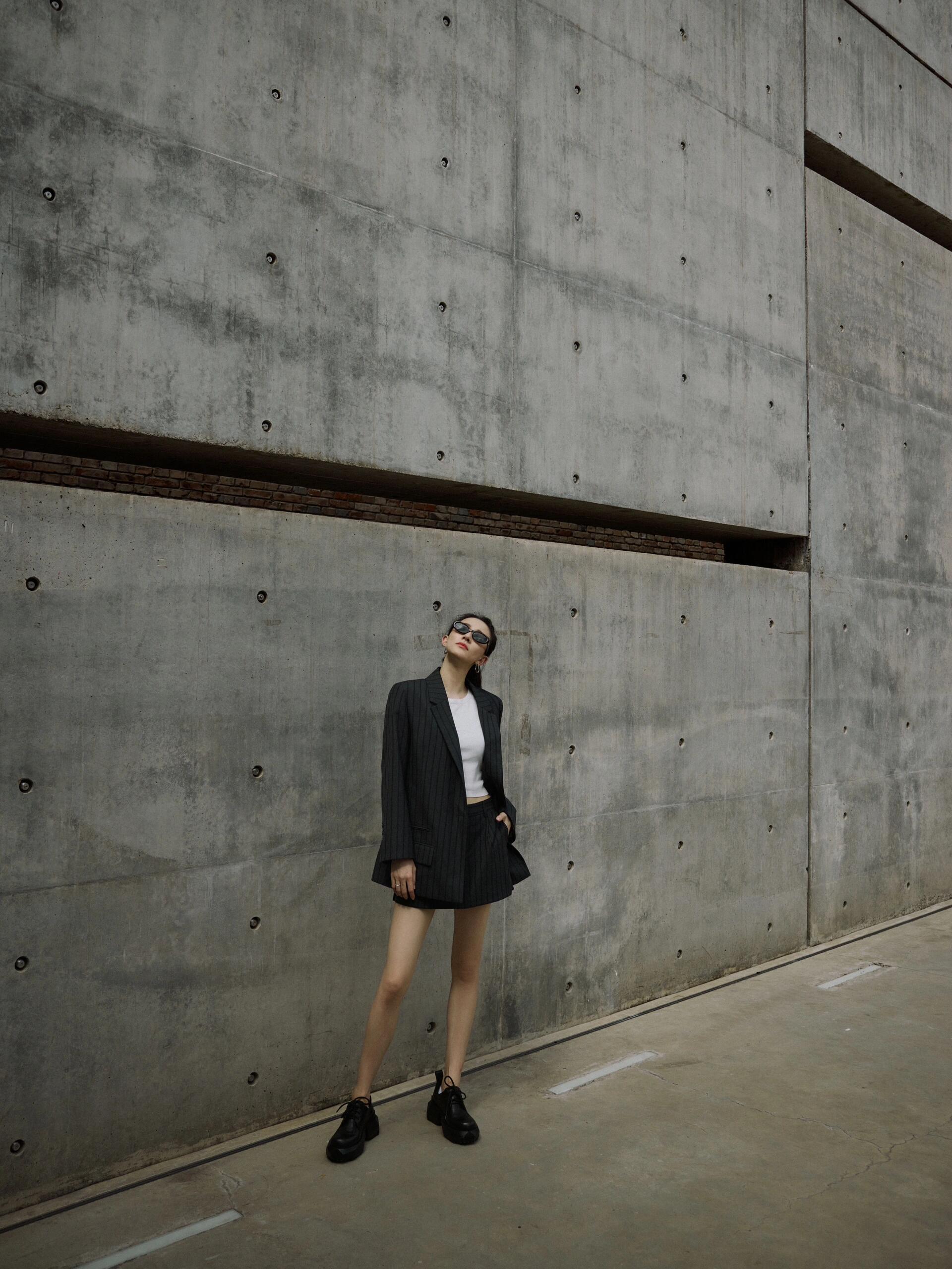 张豆豆,黑白搭配,秋日户外,酷飒有型