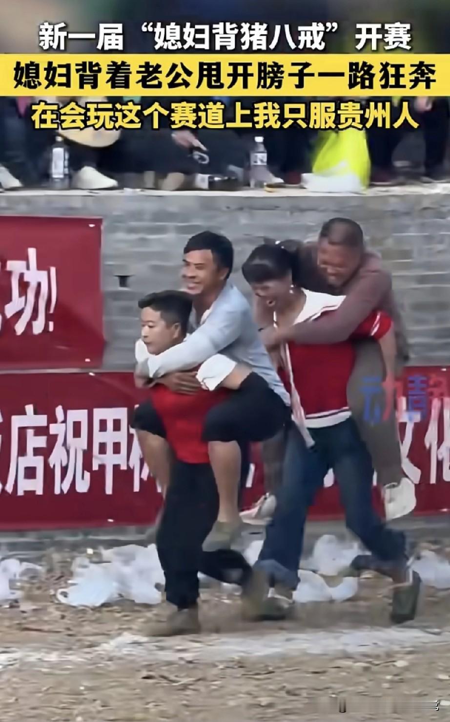 贵州媳妇背猪八戒大赛太疯了!媳妇背着老公狂跑! 贵州麻江这波操作绝了!“媳妇背猪八戒”大赛直接把我看懵——媳妇们背着老公在泥地里狂奔,那架势比跑马拉松还猛! 你看那大姐,背着老公甩开膀子冲,泥水溅得飞起,老公在背上跟个“挂件”似的,围观的人笑到跺脚。还有些组合直接摔成一团泥,起来接着跑,这快乐谁懂啊! 有人说这是贵州人会玩的极致,把夫妻默契和乡土狂欢玩出花;但也有人吐槽“男人这是被宠成八戒了?” 咱就说,这种反套路的赛事,是真解压还是在“整活”?你觉得该不该推广?