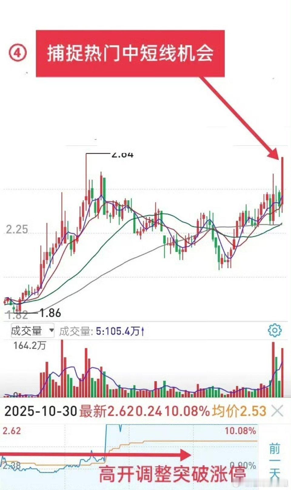 ④幅图,多头趋势,前面冲高后回落,调整2天,早盘高开我们发现这个异动,随后冲高回落调整,逐渐弱转强,股价回至开盘,主力没有出逃,突破2个高点,强势!这类个股往往当日会走出大行情,是低吸的好机会。