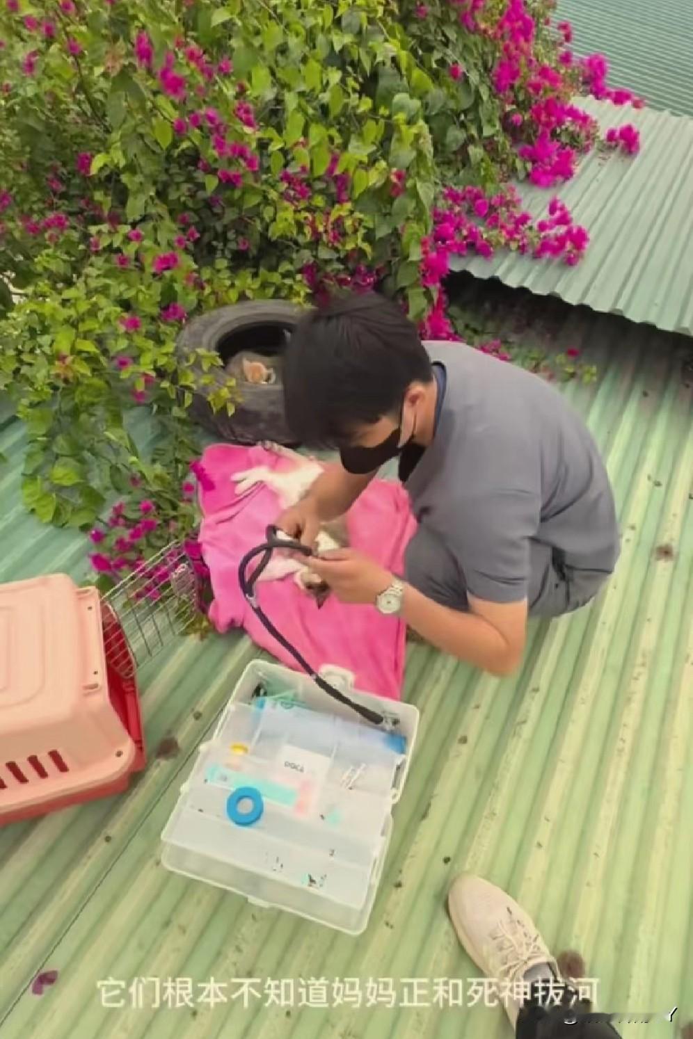 在一处屋顶的废旧轮胎里,一窝刚出生的小奶猫紧紧依偎着气息微弱的猫妈妈,它们不知道,自己的妈妈正徘徊在生死的边缘。 这只猫妈妈因为怀孕,被有洁癖的主人狠心抛弃,走投无路之下,才在屋顶的轮胎里为孩子寻觅降生之所。 所幸,救助站善良的小哥发现了它们。由于屋顶太高,他找来叉车,随着机械臂缓缓升起,才得以靠近这个危在旦夕的小家庭。 他小心翼翼地为猫妈妈吸氧,给饿坏的小奶猫喂食,连同猫妈妈一共6只,然后把它们一只只装进猫笼,带回了救助站。 经过救助站的悉心治疗,猫妈妈终于苏醒,它们一家子在救助站过上了安稳的生活。 这个故事背后,是无数被遗弃宠物的心酸。养宠物绝非一时兴起的消遣,而是一份需要负责到底的承诺。 既然选择带它回家,就该接纳它的一生,而不是在它需要依靠时将其抛弃。 这不仅是对宠物的负责,更是对自己初心的坚守。愿这份善意能被更多人看见,愿每一个小生命都能被温柔以待!