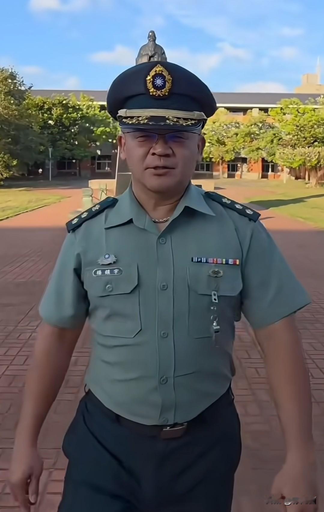 台军夏季陆军军装。整体色调为深绿与绿灰色,显然在色彩纯度上做了低调处理。其帽子延续了 1947 年「国军」帽子的设计理念,帽头造型如同古代建筑外翘的房檐,能让军人显得更为挺拔。帽子中间有金色镶边,内嵌青天白日徽章。上衣为紧身衬衫样式,右胸处标注姓名,左胸则佩戴军衔标识。长裤为深绿色,搭配束腰并配有徽章的皮带。 军服穿着 海军军官服装 民国军官装 民国军人服饰 台湾军装 夏日常服 军官军服