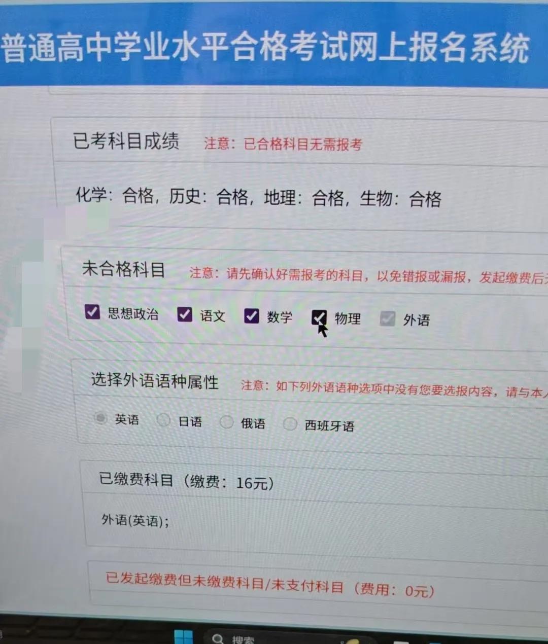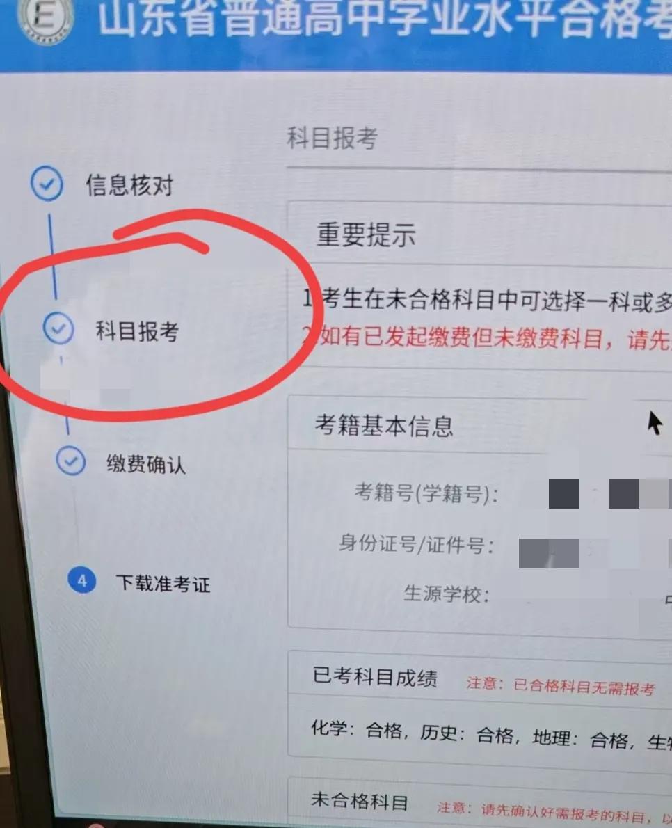 【山东高中合格考缴费漏交了科目怎么办?】 这几天山东临沂高中合格考缴费, 好多家长交费的时候不够仔细, 漏选了合格考的科目, 手机再次登录发现只显示已经缴费页面,没法继续补交其他,就慌了。 遇到这种情况千万别慌, 用手机登录无法显示全部页面,这个时候换成电脑登录,登录以后,在左侧的列表了,点击“科目报考”,再次勾选没有缴费的科目,缴费就可以了!山东高中会考
