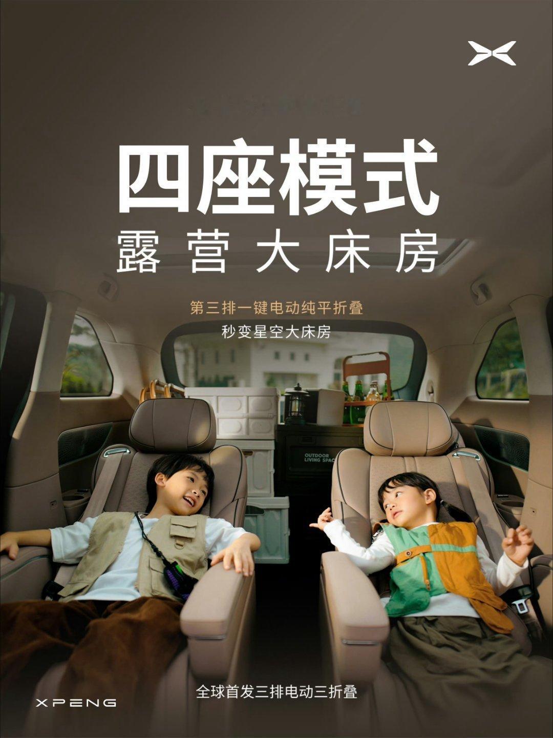 这是小鹏汽车官宣内容,小鹏X9鲲鹏超级增程技术发布会定档11月6日19:00。此次亮点是小鹏X9超级增程车型全球首发「三排电动三折叠」,第三排座椅支持四六分纯平放倒、一键电动收纳,可切换多种空间模式: