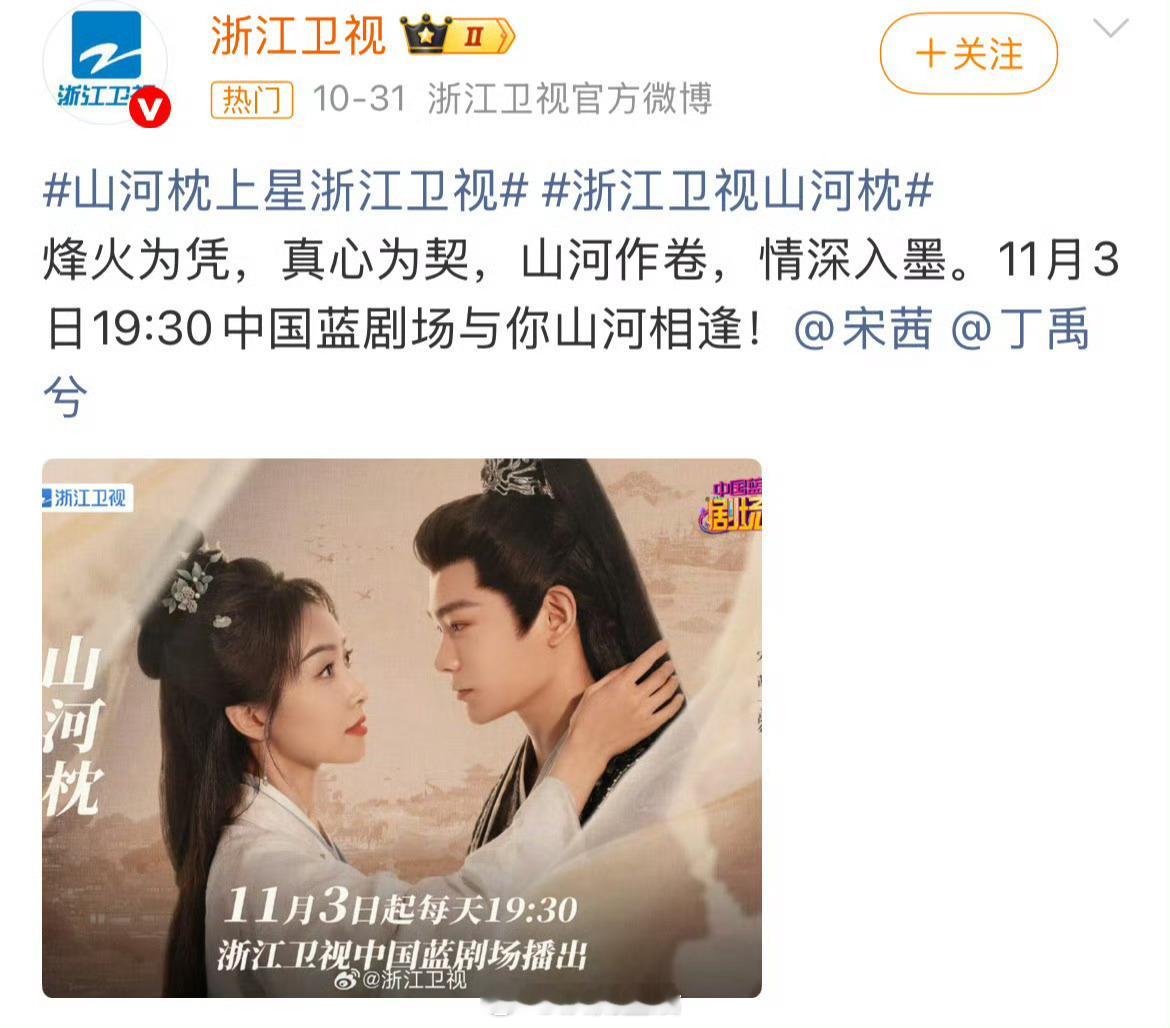 山河枕今晚上星浙江卫视了哎,茜已经连续7年有作品上星了,还记得下一站是幸福当年成绩也特别好,cvb时代央卫一番剧都破一的含金量真的高👍宋茜连续七年作品上星