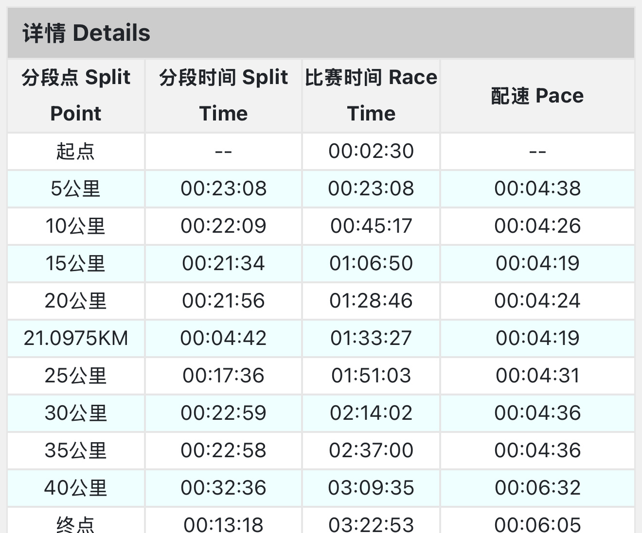 髂胫束的痛感时有时无,我只能一路一直找医务给喷雾,直到坚持到37公里开始,腿就开始要抽筋了,包括髂胫束也到了忍受不了的地步了,只能释怀了,能坚持顺利到终点就行了,一路边忍着,加上赛场的兴奋感,终于是顺利到终点了!