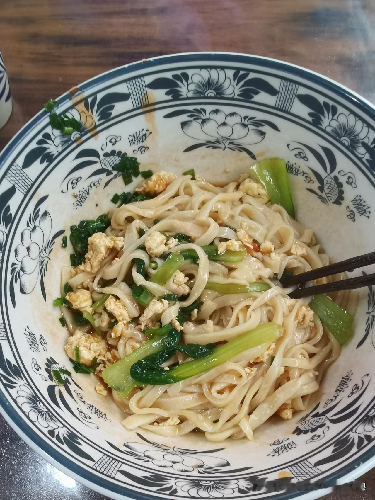 晒出我的今日美食今天下午4点多有点饿了,就在一家陕西手擀面馆前停下来了,我点了一碗西红柿鸡蛋拌面,老公点的杂酱面,一会功夫老板就把面做好,端到桌子上,我一看,哇,好大的碗,跟盆一样[大笑],老板说他们都是这样的碗,不过面也不少,一看就是手工擀的,味道也不错,果然还是手擀面好吃👍👍 手擀面