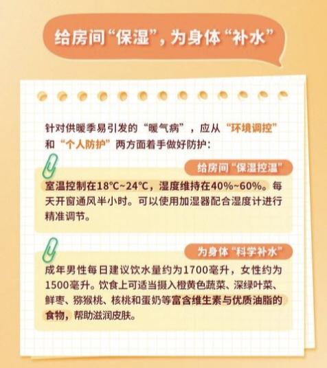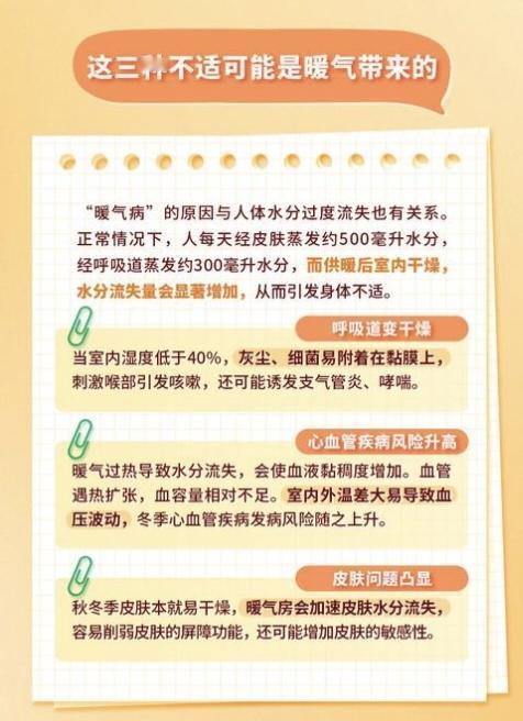 北京朝阳11月7日试供暖!室内暖意要上线,“暖气不适”也可能来报到。 首都医科大学附属北京中医医院专家贴心支招,教大家科学应对供暖季常见健康问题。 暖气虽像“冬日小太阳”,暖身却易添烦恼。别等干燥、不适找上门,提前get专家建议,让暖意不添“小插曲”,舒舒服服过暖冬~