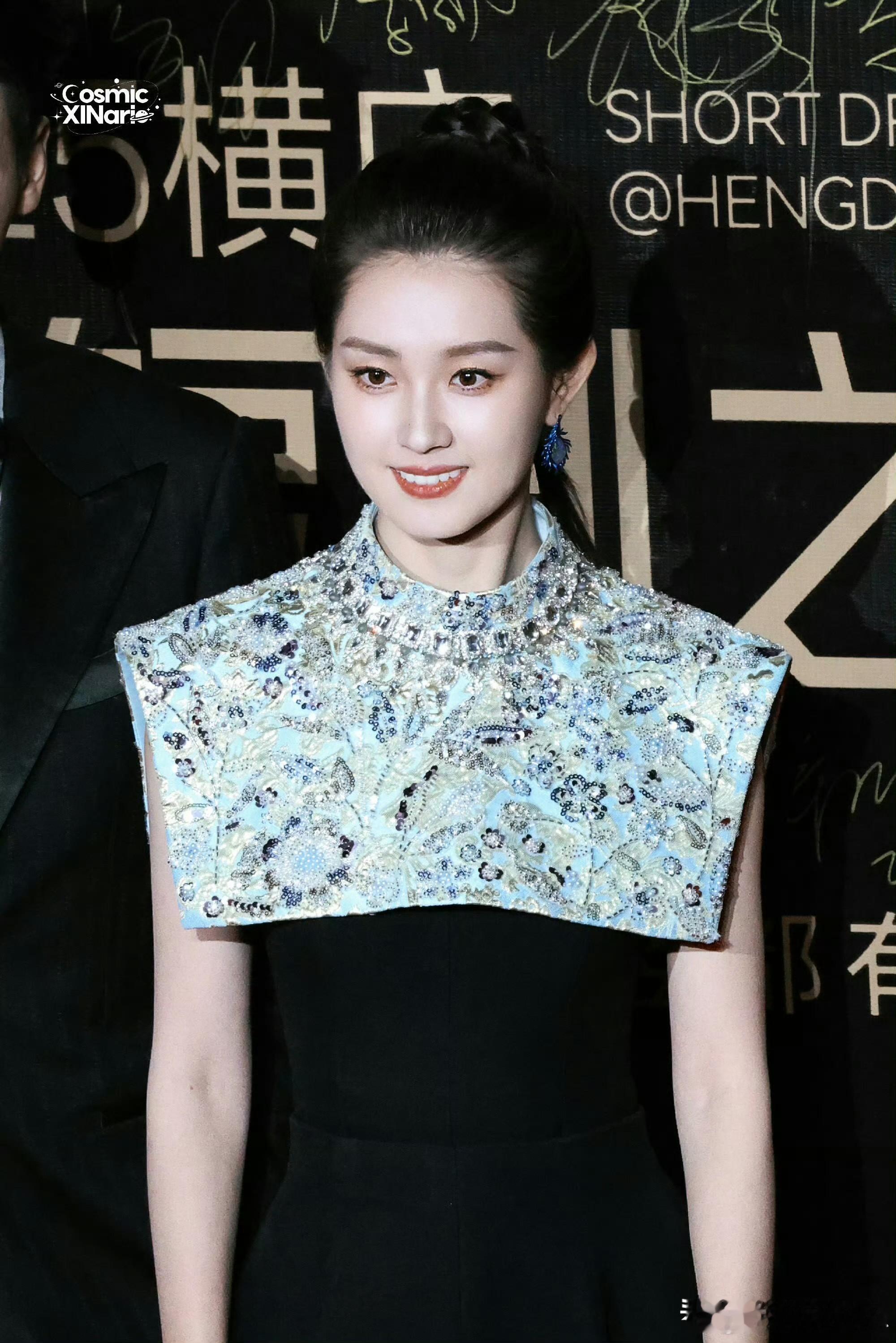 在横店微短剧之夜颁奖典礼上,郭宇欣身穿一条黑色浮雕印花蓬蓬裙,被网友指出这条裙已经出现过两次了。