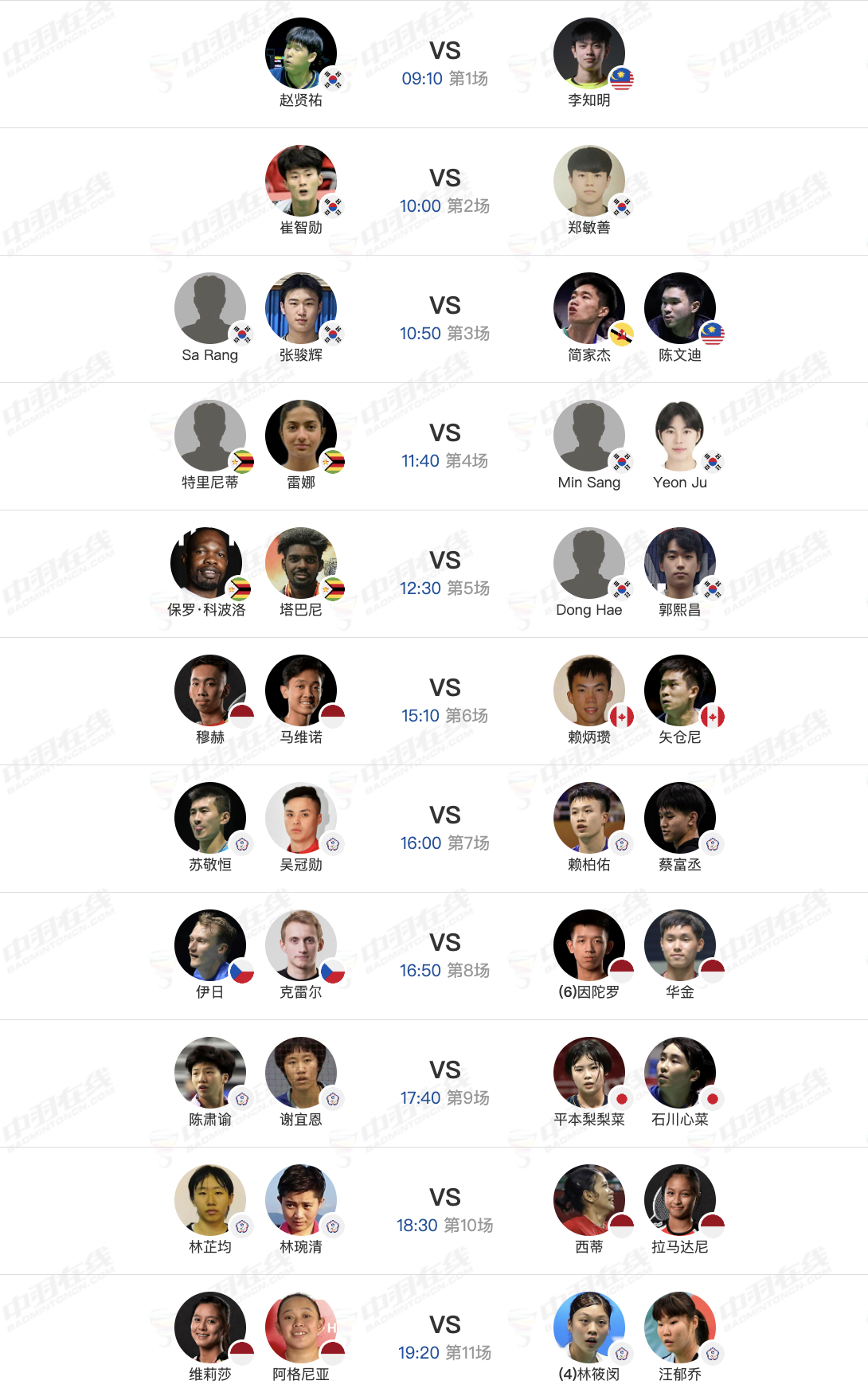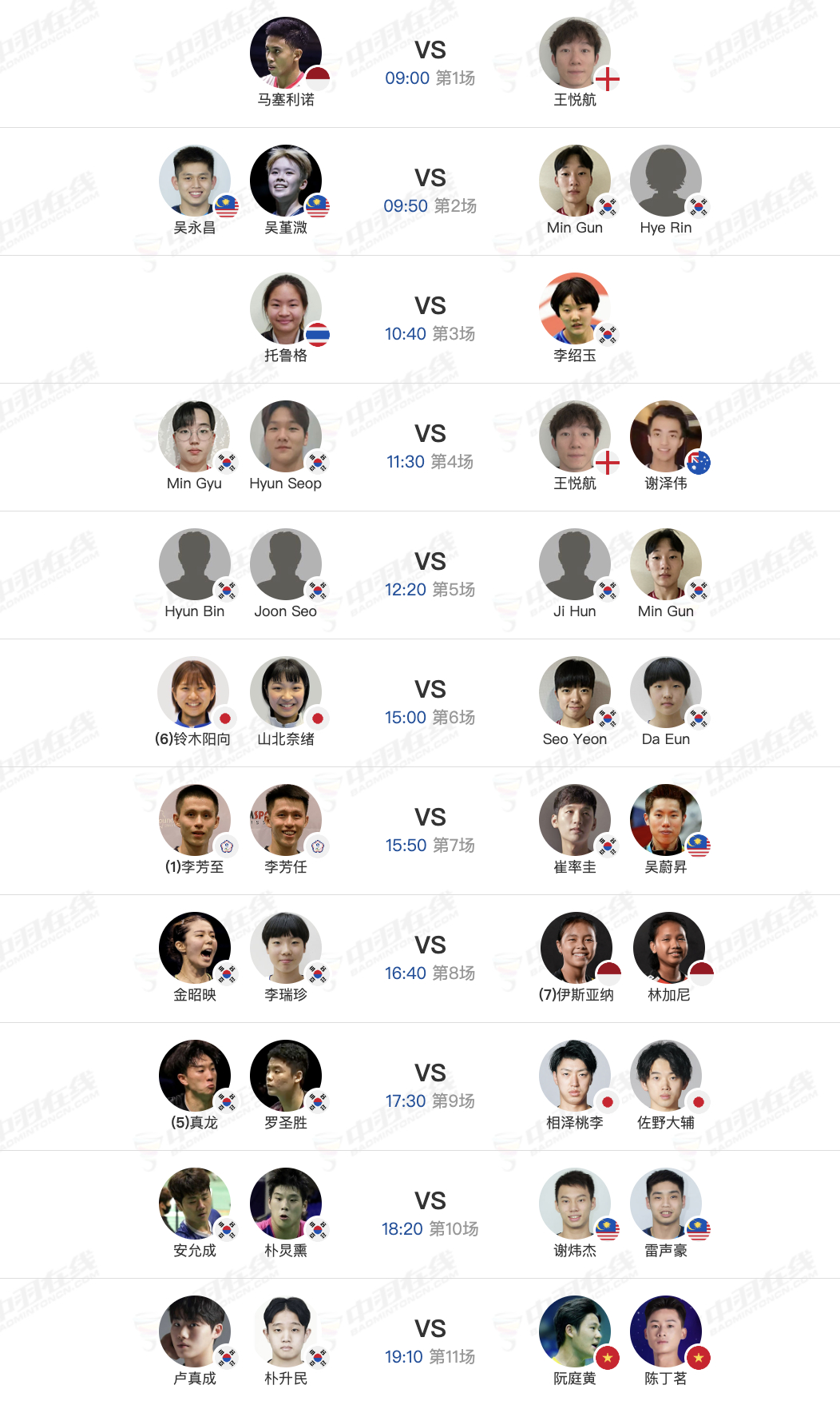 2025年韩国羽毛球大师赛,11月4日各单项资格赛➕部分正赛赛程,资格赛9点开赛