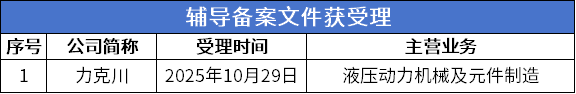 力克川公告显示,2025年10月,公司青岛证监局提交了向不特定合格投资者公开发行股票并在北京证券交易所,10月29日青岛证监局受理了公司提交的上市辅导备案材料,公司进入辅导期。