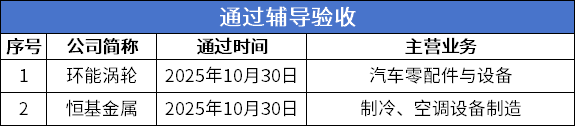 10月27日-11月2日,北交所有2家公司通过辅导验收。