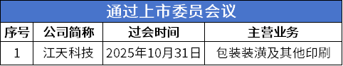 10月31日,在2025年第27次审议会议中,江天科技通过上市委员会。