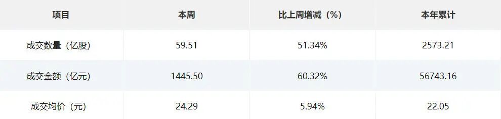 从成交量上来看,上周(10月27日-11月2日),北交所周成交量为59.51亿股,环比增长51.34%;周成交金额为1445.50亿元,环比上周增长60.32%。