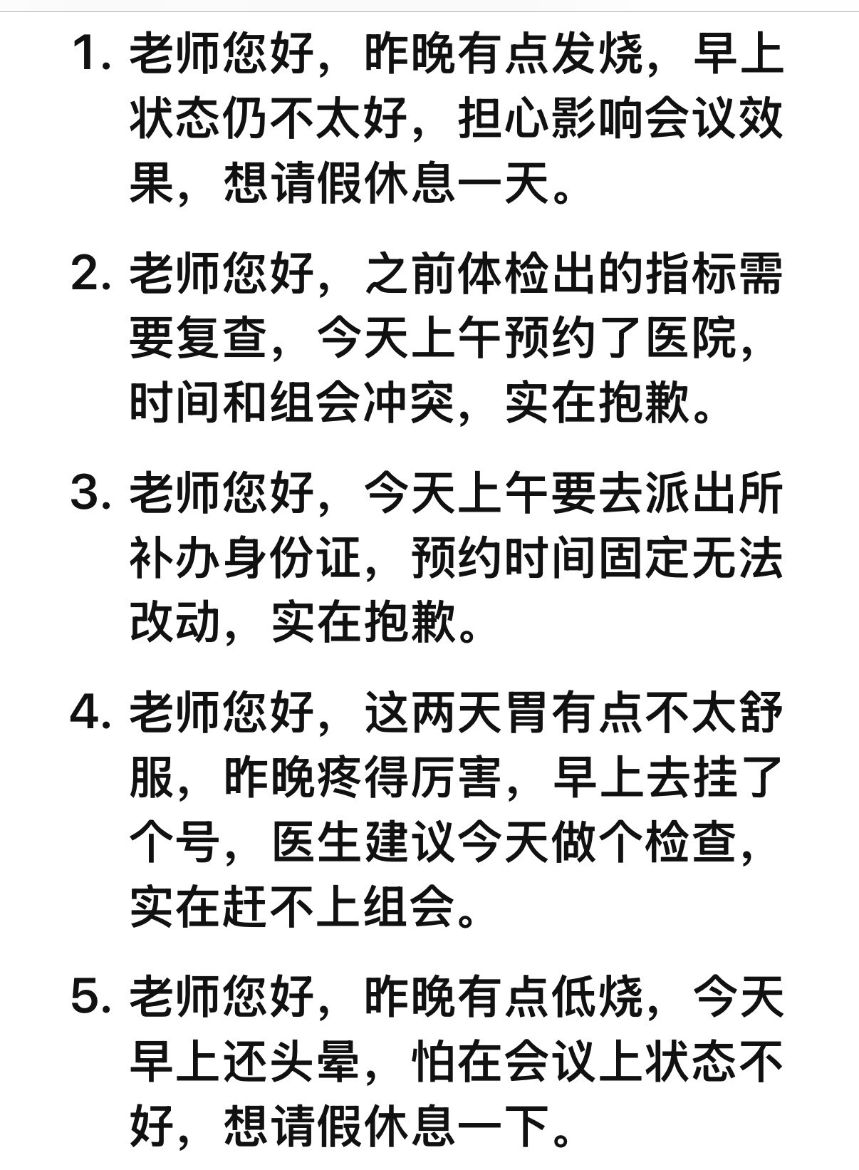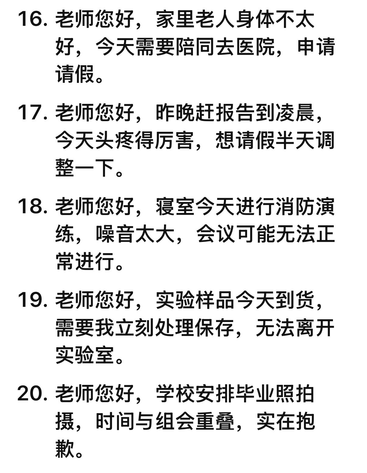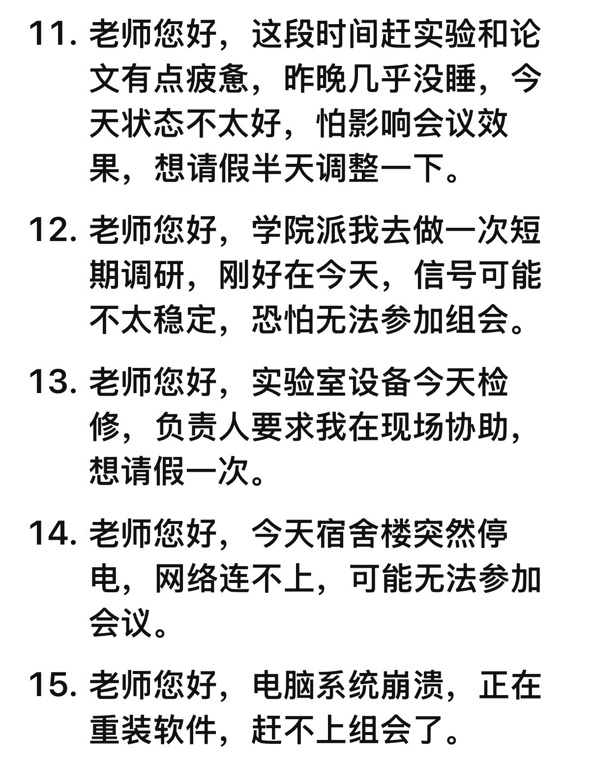 帮大家拍下来请假理由了