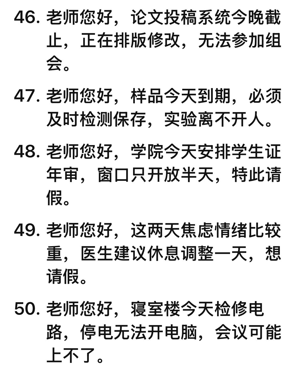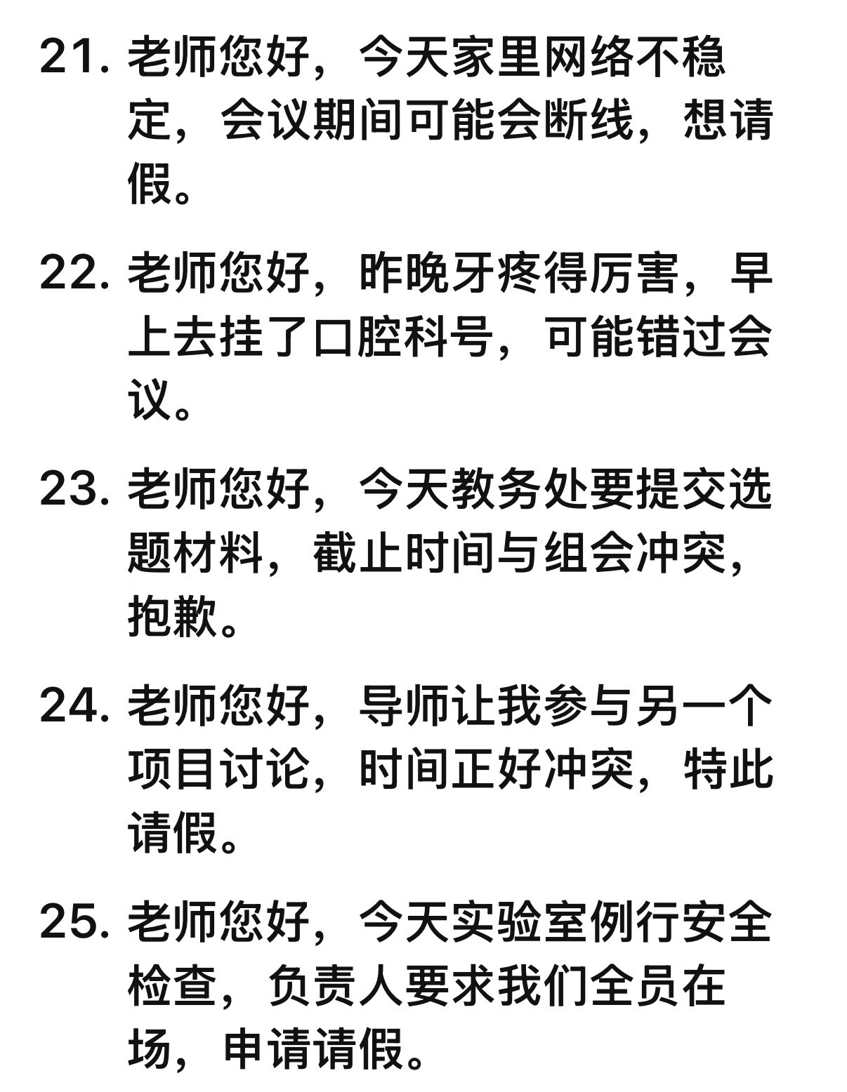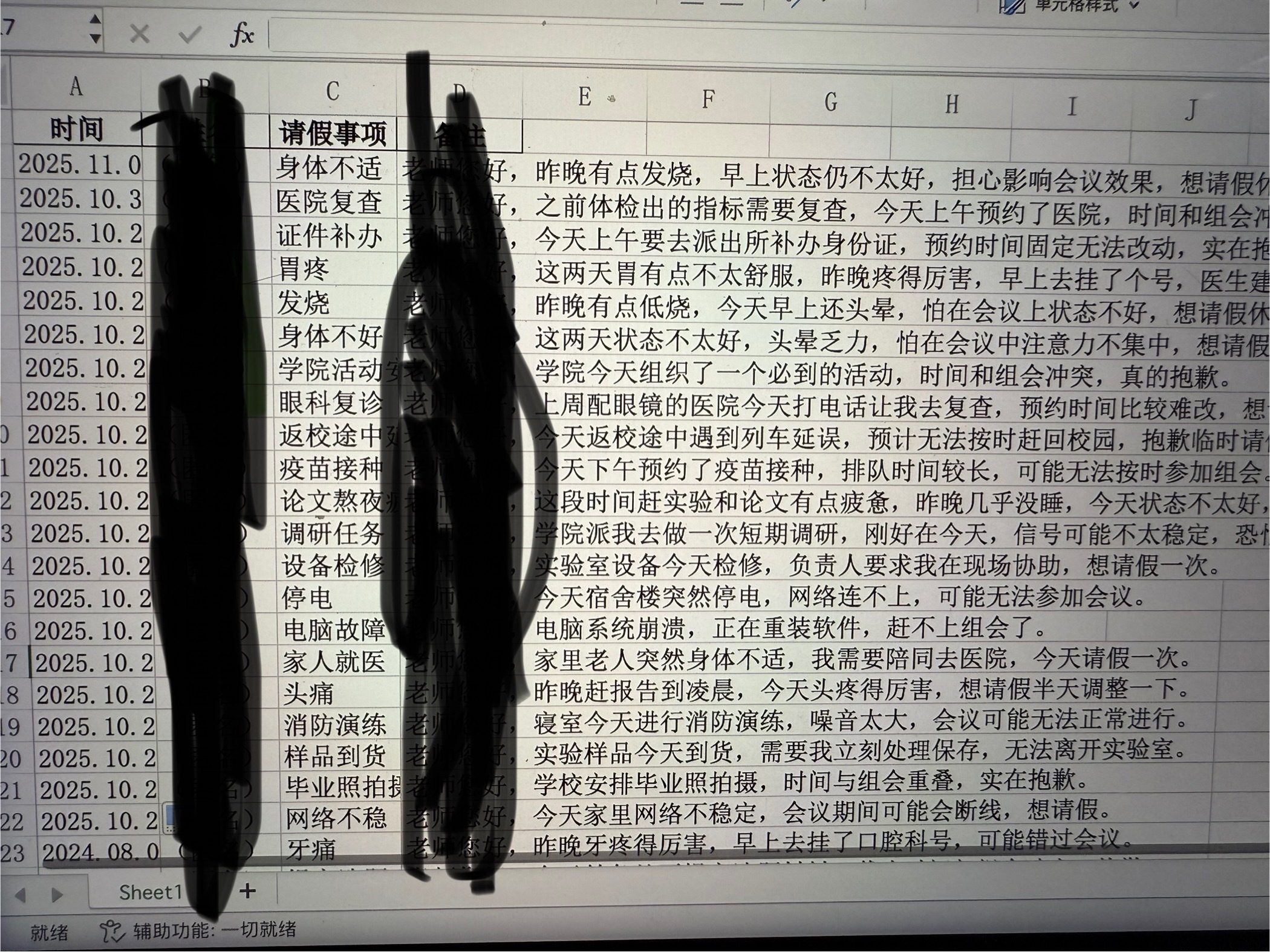 帮大家拍下来请假理由了