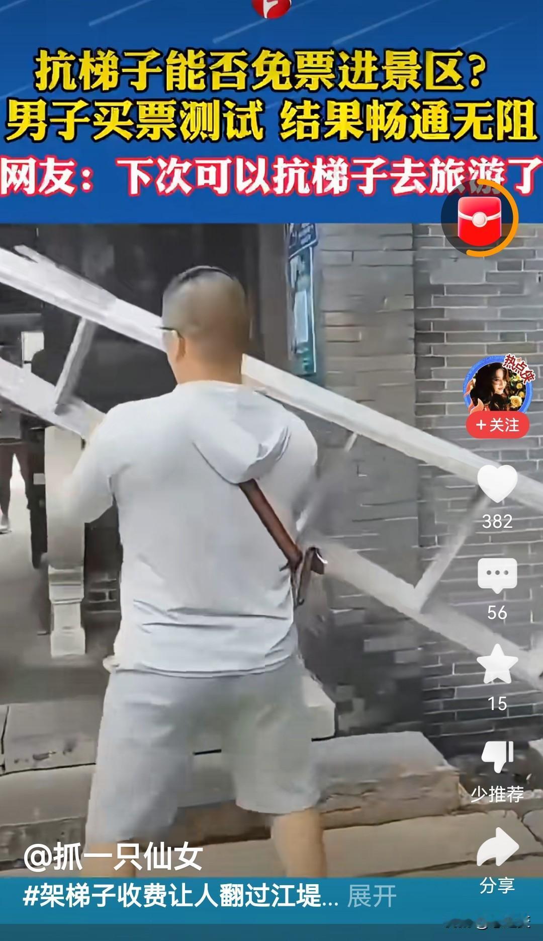 一架梯子能干什么,结果你想象不到。因为有时候他比领导还管用。 在医院排队时,你要是插队,是会犯众怒的。别急,扛一架梯子。别人主动给你让路,让你先走。 景区没买门票,你只要扛一架梯子,顺理成章,直接穿门而入,检票员还会给你维持秩序,让别人等一下,让你先走。 和大爷大妈去超市拼手速,你大概率是抢不过他们的,但是如果你扛一下梯子,他们会主动给你让道的。 大家说是也不是? 说好了可不能干犯法的事儿。