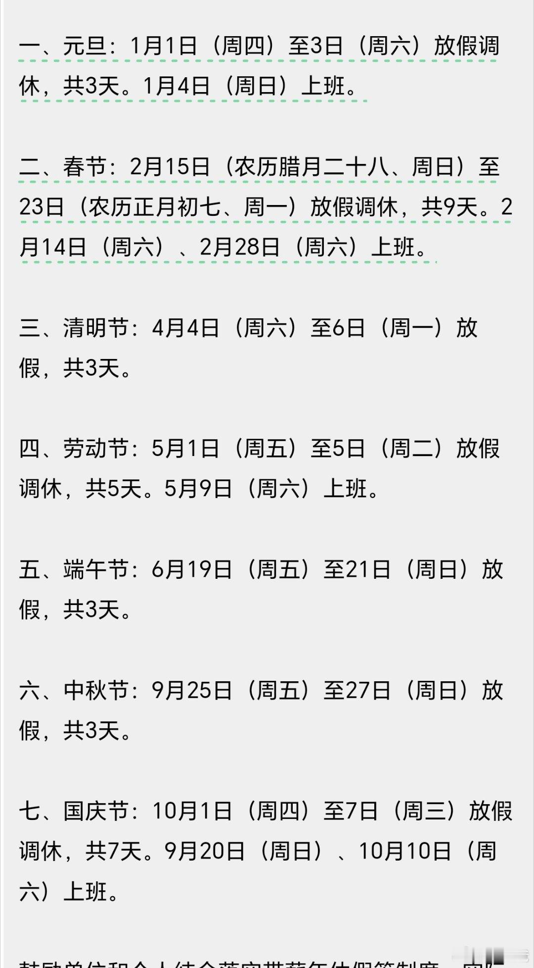 2026年,放假安排。春节9天,劳动节5天,国庆节7天。妙哉!好酒好菜,嗨起来![哈哈][哈哈]