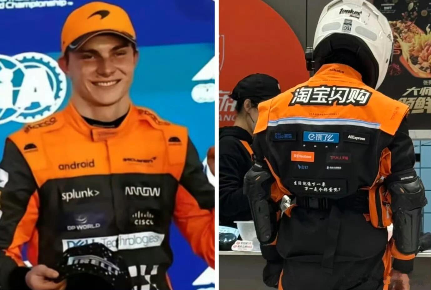 饿了么骑手已更换橙黑新工服该说不说饿了么这套新工服看起来确实还可以,起码比原先蓝色那套好看多了,只不过衣服一换,骑手们全成赛车手了,神似迈凯轮F1车队队服,你们觉得像不像?[doge]