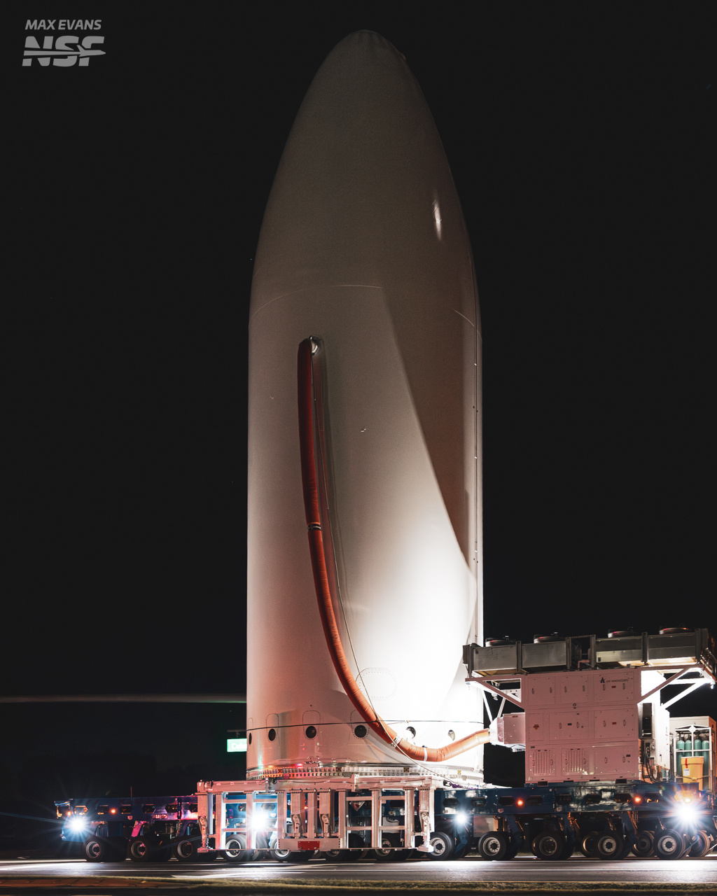 ESCAPADE火星探测器与整流罩组合体已经运往LC-36发射场,即将与New Glenn运载火箭进行整合。