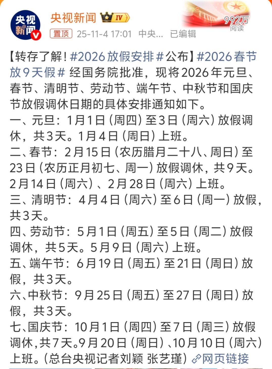 看起来很多,但春节光是走亲访友就要去掉好长时间,而且还得调休,什么时候有那种纯为休息而放的假呢[苦涩][苦涩]。