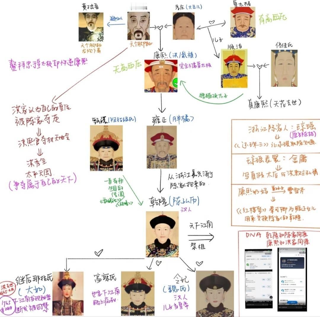最近康熙野史传的非常炸裂!事情要从网传光绪帝骨骸DNA检测开始,说发现其Y染色体类型(父系)为汉族常见的O型,非爱新觉罗家族常见的C型。 然后就有人顺藤摸瓜,扒出后来继位的康熙不是顺治生的真康熙,而是被洪承畴“狸猫换太子”调换过的。洪承畴是明朝重臣,后来降清。清军入关后,他成为招抚大学士,劝降众多明朝将领。 野史记载,洪承畴跟顺治的娘,也就是孝庄,生了一个儿子,比真康熙玄烨大两三岁。然后玄烨幼时得了天花出宫治病,没治好死了,被洪承畴换成他跟孝庄的儿子回宫顶替。这跟史上记录的康熙回宫后容貌大变相印证,并且曾有朝鲜使者记录,康熙九岁时看着像十二三岁。 也就是说,后来的康熙,不是顺治的亲生儿子,而是他同母异父的弟弟。康熙后代其实不姓爱新觉罗,而是姓洪,这事基本形成一个看似完整的质疑链,野史要变正史了?