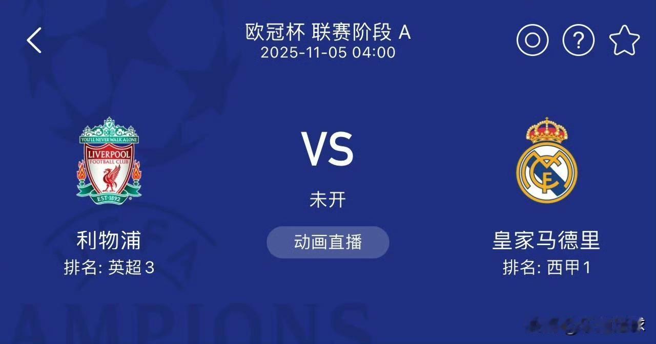 利物浦 vs 皇家马德里 近5场交锋记录: 24/25赛季欧冠小组赛:利物浦 2-0 皇家马德里 22/23赛季欧冠1/8决赛次回合:皇马 1-0 利物浦 22/23赛季欧冠1/8决赛首回合:利物浦 2-5 皇马 21/22赛季欧冠决赛:利物浦 0-1 皇马 20/21赛季欧冠1/4决赛次回合:利物浦 0-0 皇马