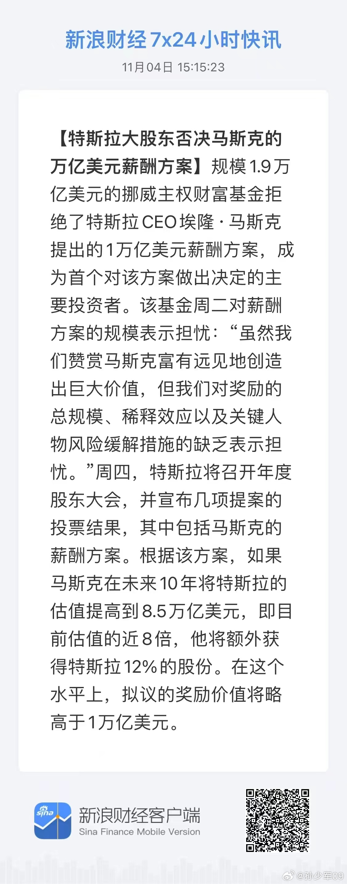特斯拉大股东否决马斯克的万亿美元薪酬方案