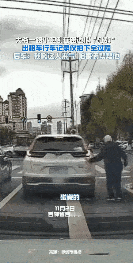 光天化日之下,一位老人竟在等红灯时公然碰瓷,整套动作行云流水,要不是后方出租车记
