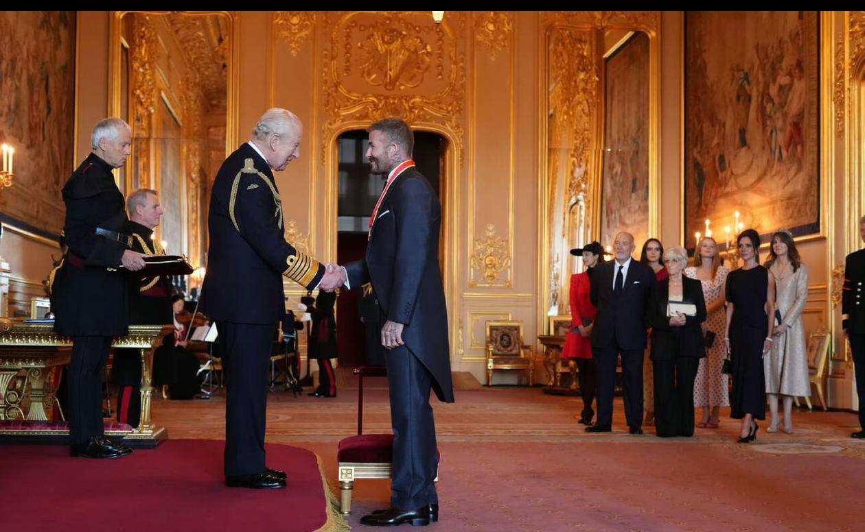 与此同时,爱丁堡公爵爱德华王子今天在威尔士卡迪夫与参与爱丁堡公爵奖计划的威尔士年轻人交谈 2025年11月4日,大卫贝克汉姆爵士在温莎城堡大庭院与他的妻子和父母合影留念,以纪念他被查尔斯三世授予下级勋位勋章,一般情况下,每位获奖者都会在城堡内外各拍1️⃣轮照片。