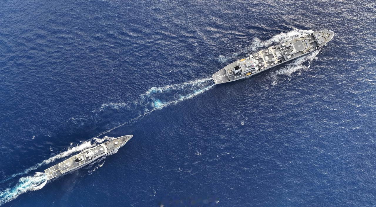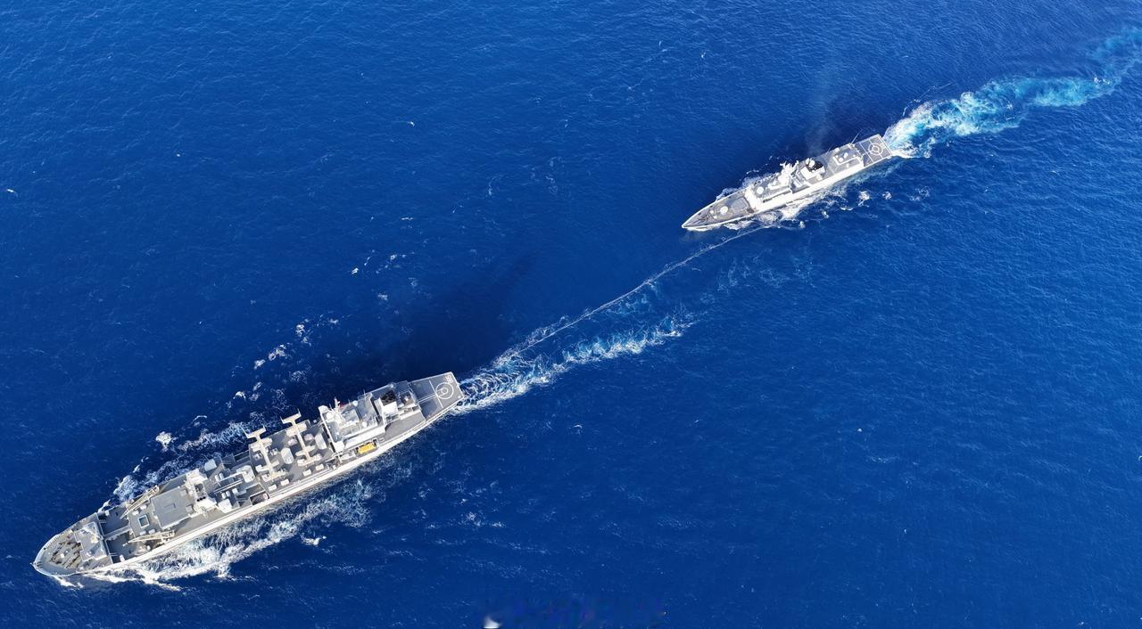 南部战区大理舰协同青海湖舰位南海某海域海上综合补给训练。
