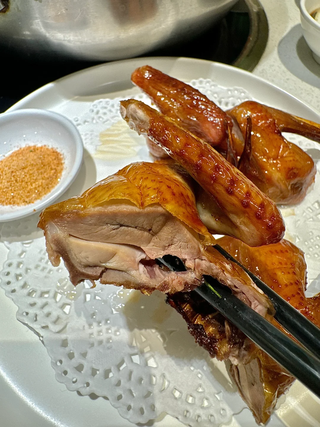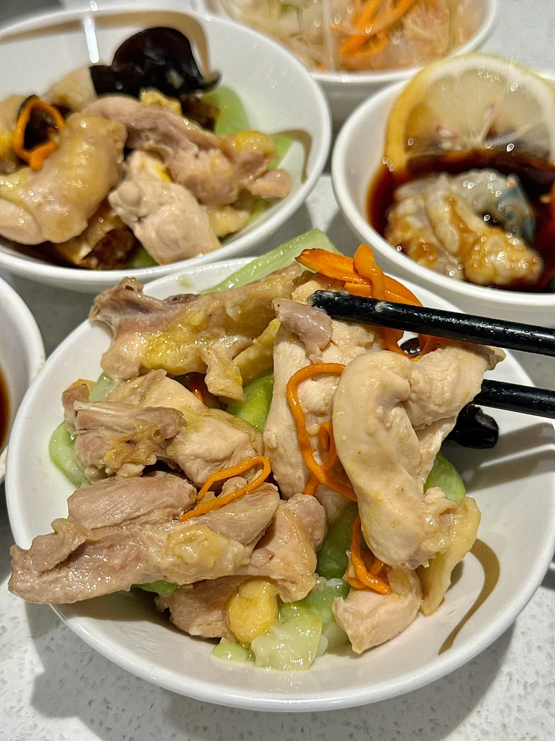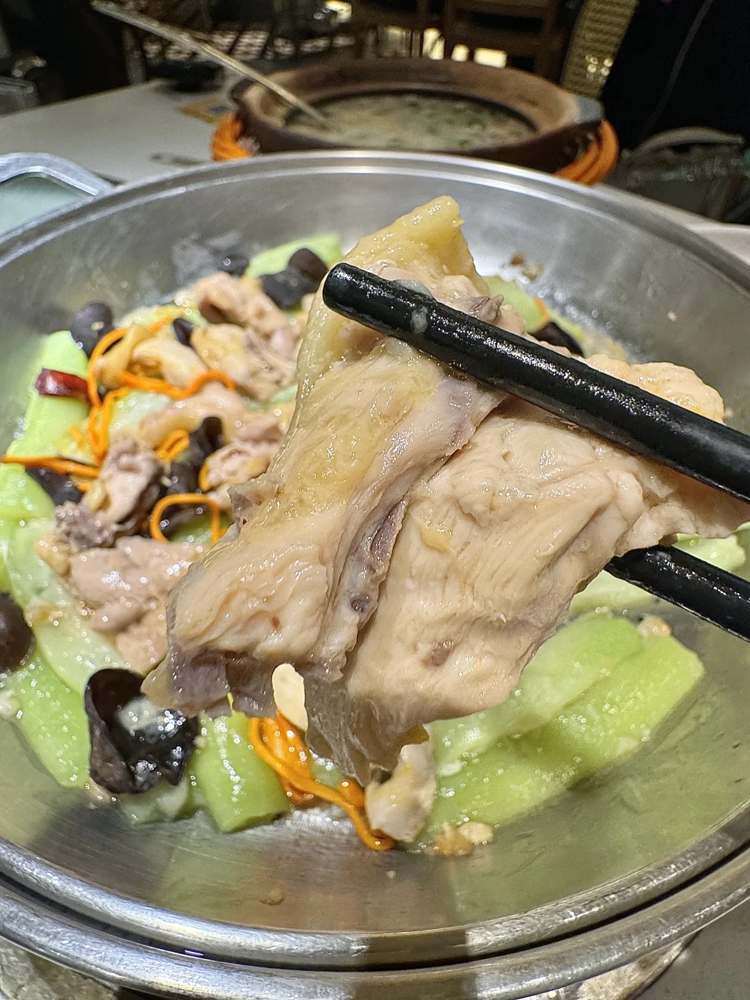 这家桑拿鸡尊嘟好好吃啊🥺 桑拿鸡肉质超级嫩滑好好吃 桑拿滑鸡里的丝瓜都好好吃…特别滑嫩 一口下去爆汁 朋友还点了鸽汤泡饭😭这个真的好好吃! 汤底是鸽汤超级鲜!一定要试试!炫了好几碗!