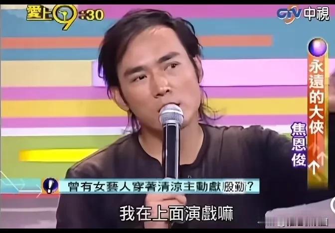 颜值天花板的焦恩俊,他的硬伤应该是秃头,年轻时候看他参加台湾综艺节目,这发型咋跟裘千仞一样,秃头蛮严重了,胜在高颜值顶着。据说,他年轻时候怕古装剧戴头套戴多了,就有些伤发爱脱落。他的性格很开朗也是很搞笑的,说内地漂亮女演员,拍古装戏穿着胸罩就过来找他,可惜他近视看不大清楚,哈哈!