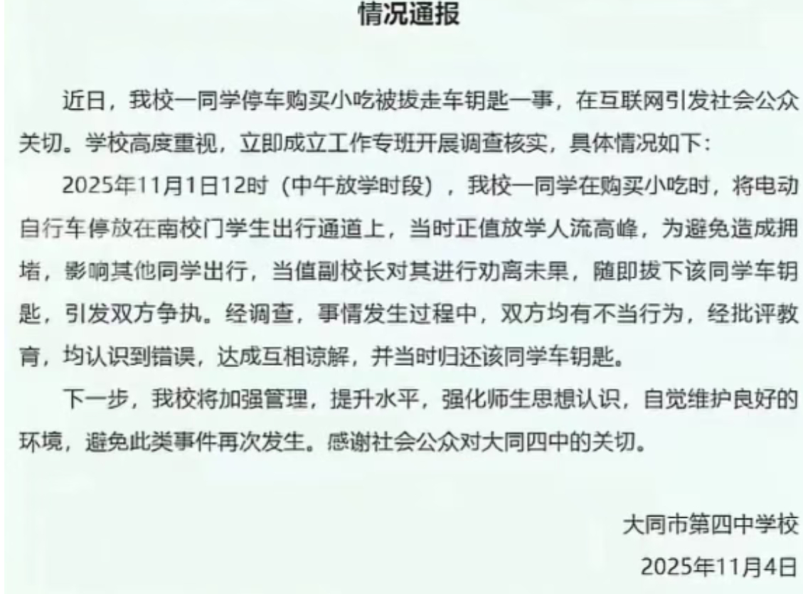 教育的核心,是“育人”,不是“管人”。“拔钥匙”这个动作,传递的不是“我为你的健康担心”,而是“我有权力,你就得听我的”。 这种赤裸的权力展示,只会让学生学会恐惧和服从,而不是理解和尊重。今天他因为一根烤肠被拔钥匙,明天他就会觉得,只要有权,就可以不讲方式方法。