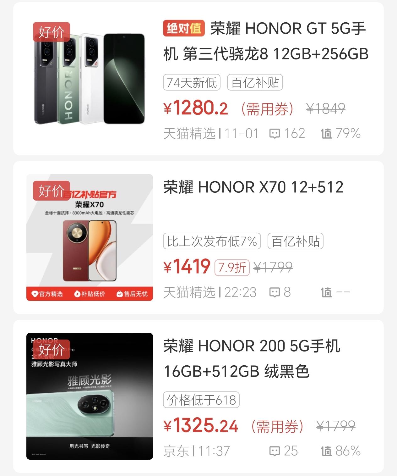本是同根生,相煎何太急[捂脸]荣耀GT、荣耀X70和荣耀200在千元出头都很有诱惑力,那该如何选择? 其实很简单,三款价格相近,但其实优势各不相同,注重坚固耐用和长续航就选荣耀X70,注重游戏性能就选荣耀GT,注重影像和大内存就选荣耀200。相信我,这样准没错[灵光一闪]