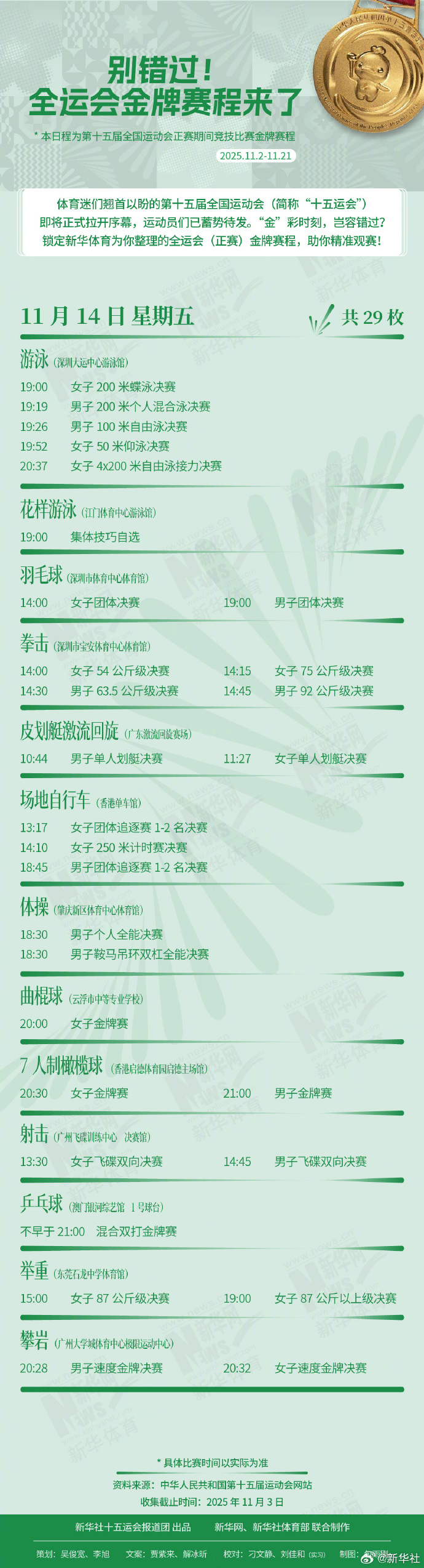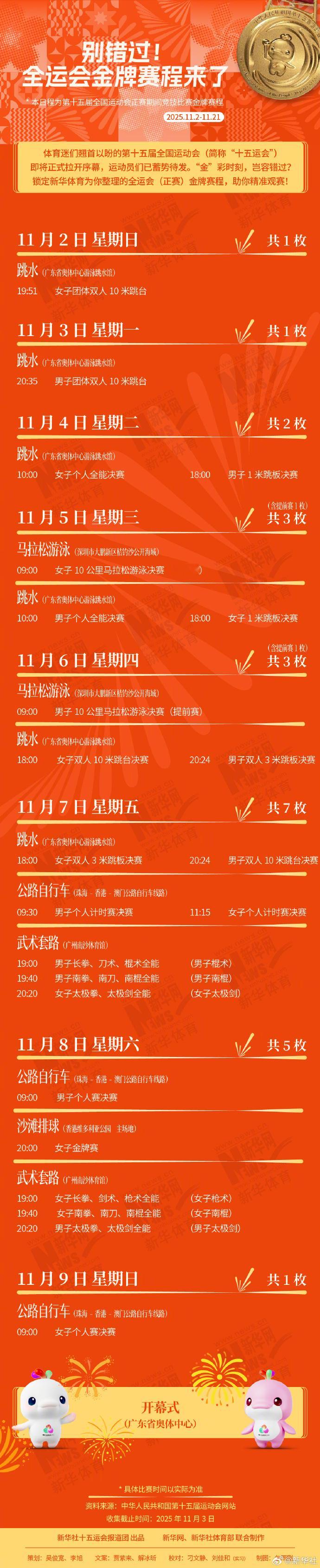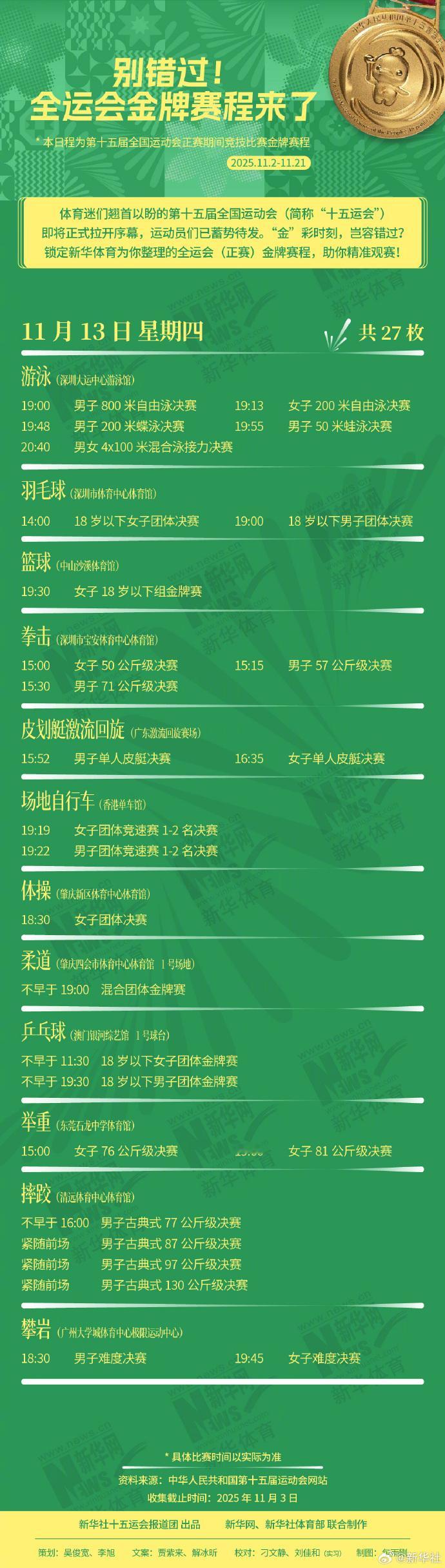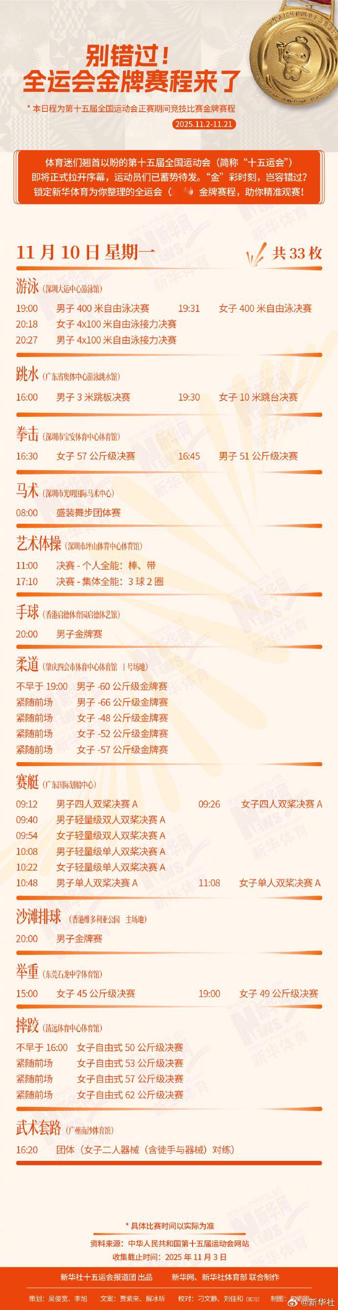 锁定为你整理的全运会(正赛)金牌赛程,助你精准观赛!
