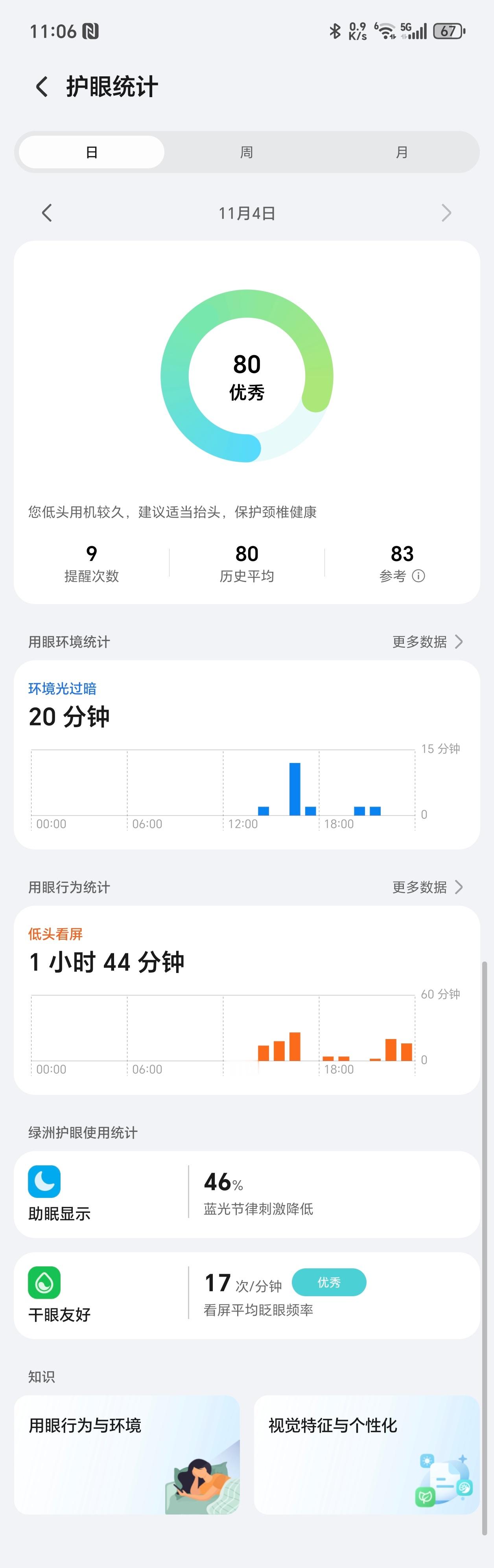 此刻真的太想说,科技是有温度的,荣耀Magic8 Pro绿洲护眼对护眼和使用习惯改善太友好了,当我过度低头玩或环境光对眼不友好时,直接就弹出提醒,让我多多注意,而且还能看护眼统计报告,知晓自己习惯。数码闲聊站[超话]