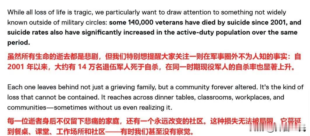 自2001年至今,有超过14万的美国退伍军人自杀,美国网友互相也进行了“友好”的