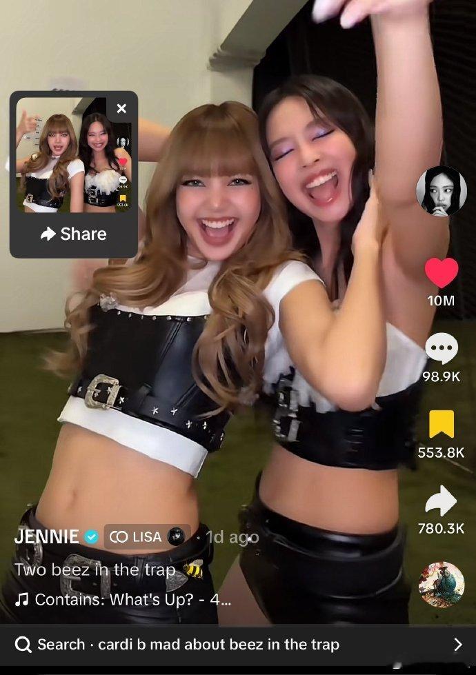 Jennie和Lisa共创视频破千万赞Jennie&Lisa共创视频轻松破千