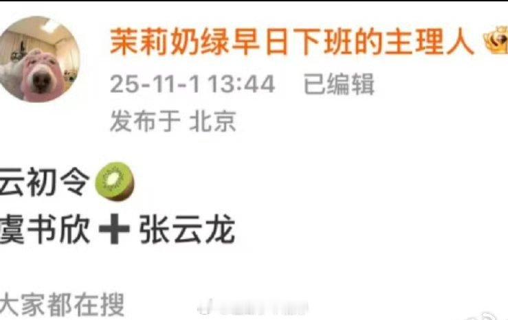 🍉云初令最新阵容:虞书欣、张云龙、出演。