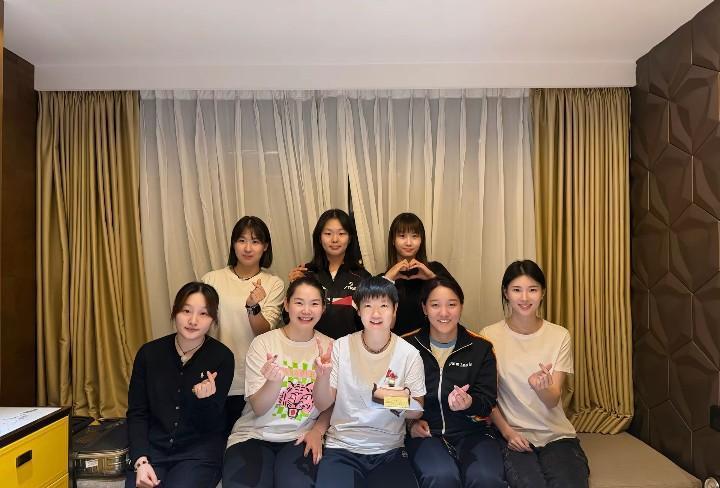 莎莎和一班河北小师妹们庆祝生日,看那背景,像是酒店里面,这应该是在澳门庆祝的生日。 那天晚上,酒店大厅的灯光格外柔和,点缀着大厅的一排气球,墙上的装饰独具匠心。桌子中央放着那只看起来像茶壶的生日蛋糕,吸引了全场的目光。莎莎穿着一袭温柔的碎花长裙,笑容满面,和小师妹们聊着天,整个气氛都洋溢着欢乐。刘炜珊和王添艺挨着莎莎坐,时不时和她开着玩笑,让大家都笑成了一团。 “小师妹们,这次一定要陪莎莎尽兴啊!”刘炜珊俏皮地说道,然后拿起话筒,开始唱起一首欢快的生日歌。歌声将大家的注意力都集中到莎莎的身上,大家也不约而同地加入合唱。莎莎被这阵突如其来的“演唱会”逗得忍不住捂嘴大笑,她的脸上写满了幸福。 王添艺则精心准备了一个特殊的礼物——一个手工制作的影集,里面塞满了她和莎莎一同在训练、比赛和旅途中拍下的小瞬间。王添艺把影集递到莎莎手中,眼神中带着些许期待,“莎莎,虽然这个礼物没有很贵,但它满满都是我们的回忆,你一定要喜欢!”莎莎翻开影集,感动地眼眶有些湿润,一边笑着说:“添艺,这真是太惊喜了,我怎么可能不喜欢呢!” 蛋糕切下来了,每个人都拿到了一小块,还争相拍照留作纪念。那块像茶壶的蛋糕虽然造型奇特,但味道意外地好,甜而不腻,莎莎忍不住夸奖:“这个蛋糕真的像是特别为我量身定制的,太可爱了,太好吃了!”客厅里又响起阵阵笑声。 不知是谁突然拉过董琳,将她推到大厅中央并递给她一条亮闪闪的生日丝带,“董琳,快给莎莎戴上生日丝带,全场我们都会听你的指挥!”董琳被弄得哭笑不得,但她还是认真地将丝带帮莎莎围好,然后一本正经地宣布:“莎莎,今天你是女王,我们全体臣服!”此话一出,众人纷纷围着莎莎假装跪拜,莎莎忍俊不禁,笑得连气都喘不上来了。 接下来的几个小时,大家玩了好几个小游戏,一个接一个的节目让人笑声不断。河北的小师妹们各个都很有活力,竟然还表演了她们自编的舞蹈。舞蹈的动作虽然不怎么专业,但胜在创意十足,莎莎忍不住上台加入她们,将整个气氛推向了高潮。她跳得并不太标准,但大家还是不停为她喝彩。 聚会接近尾声的时候,莎莎站起来,举起手中的杯子,对着大家说道:“今天真的很感动,能有你们陪我过生日,这一天变得无比特别。你们都是我的家人,也是我最重要的朋友。这次生日,我感受到了满满的爱,谢谢你们!”说完,莎莎和大家碰杯,又吃了最后几块蛋糕。 结束后,大家陆续离开,但是莎莎站在酒店的窗边,看着夜晚的澳门街景,心中仍然回味着这场派对。她想,能够和这么多亲近的人一起庆祝,是最难得的一种幸福,或许这就是人生最美好的瞬间吧