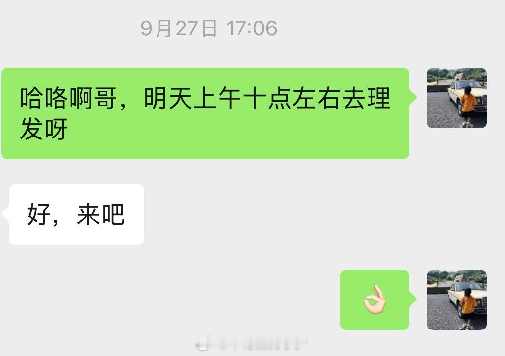 刚准备去洗个脑袋,后来一想似乎好久没理发了,打开手机聊天界面一看,果然,一个多月了,受不了了,去理发💇🏻♂️我这头发平均一个月一次刚刚好,你大约多久理一次头发呢?[偷笑]