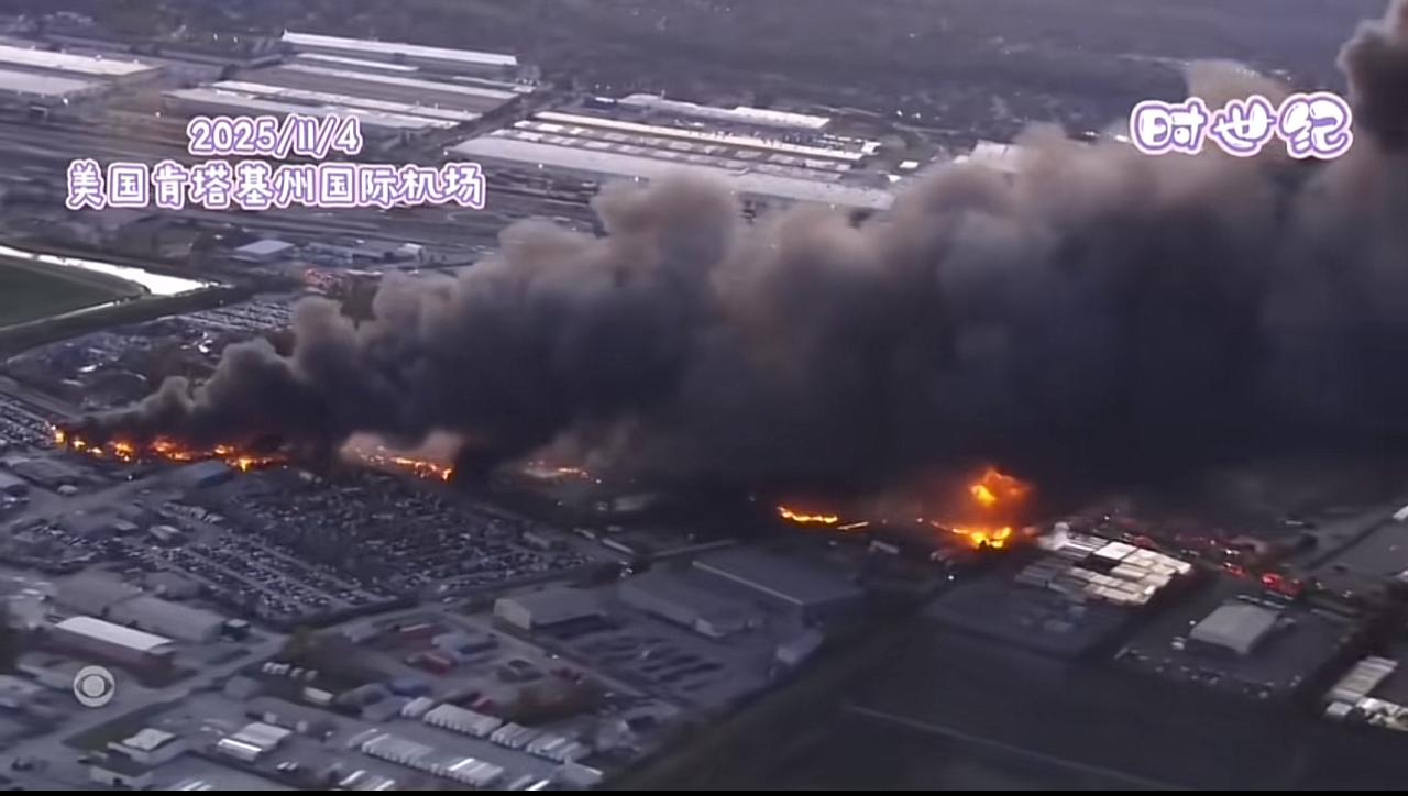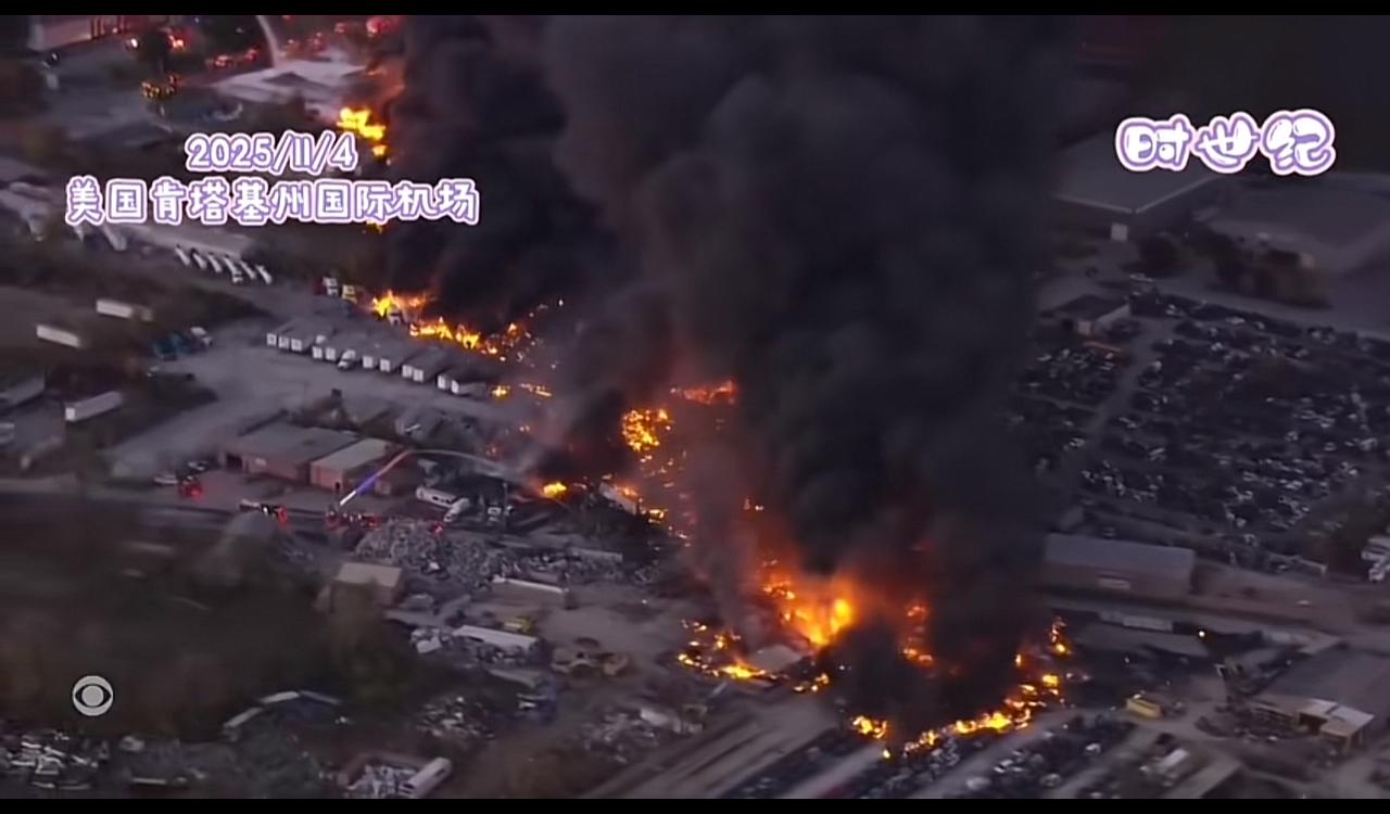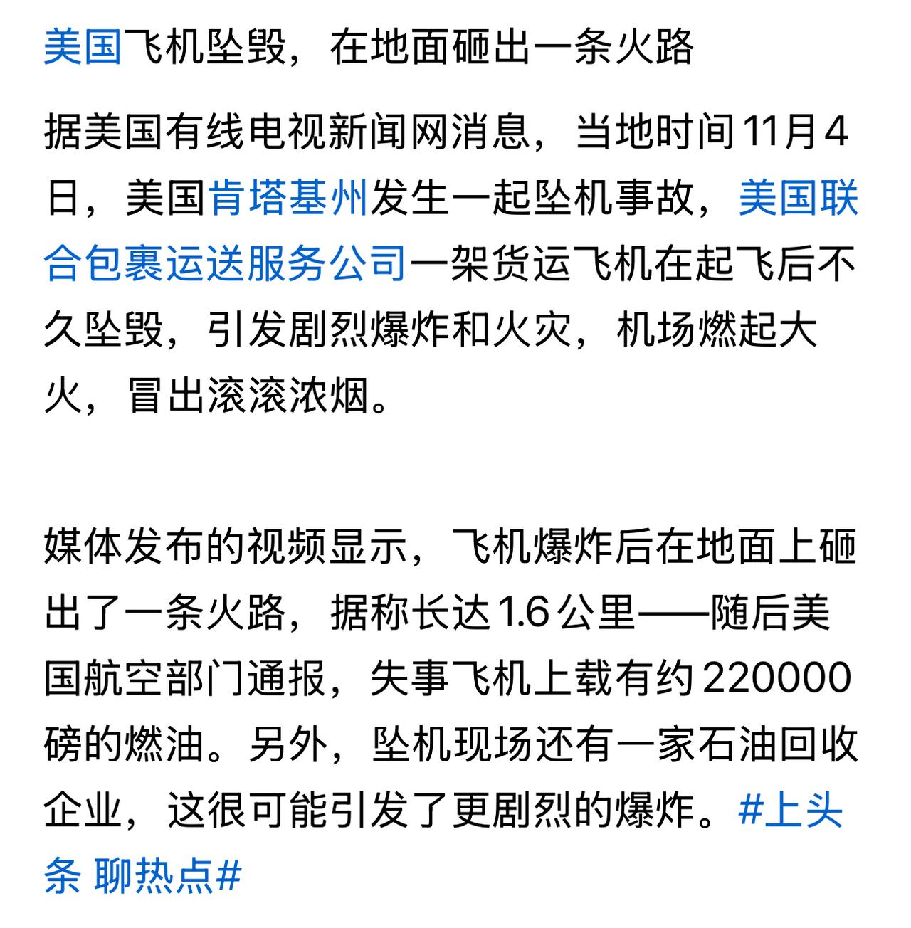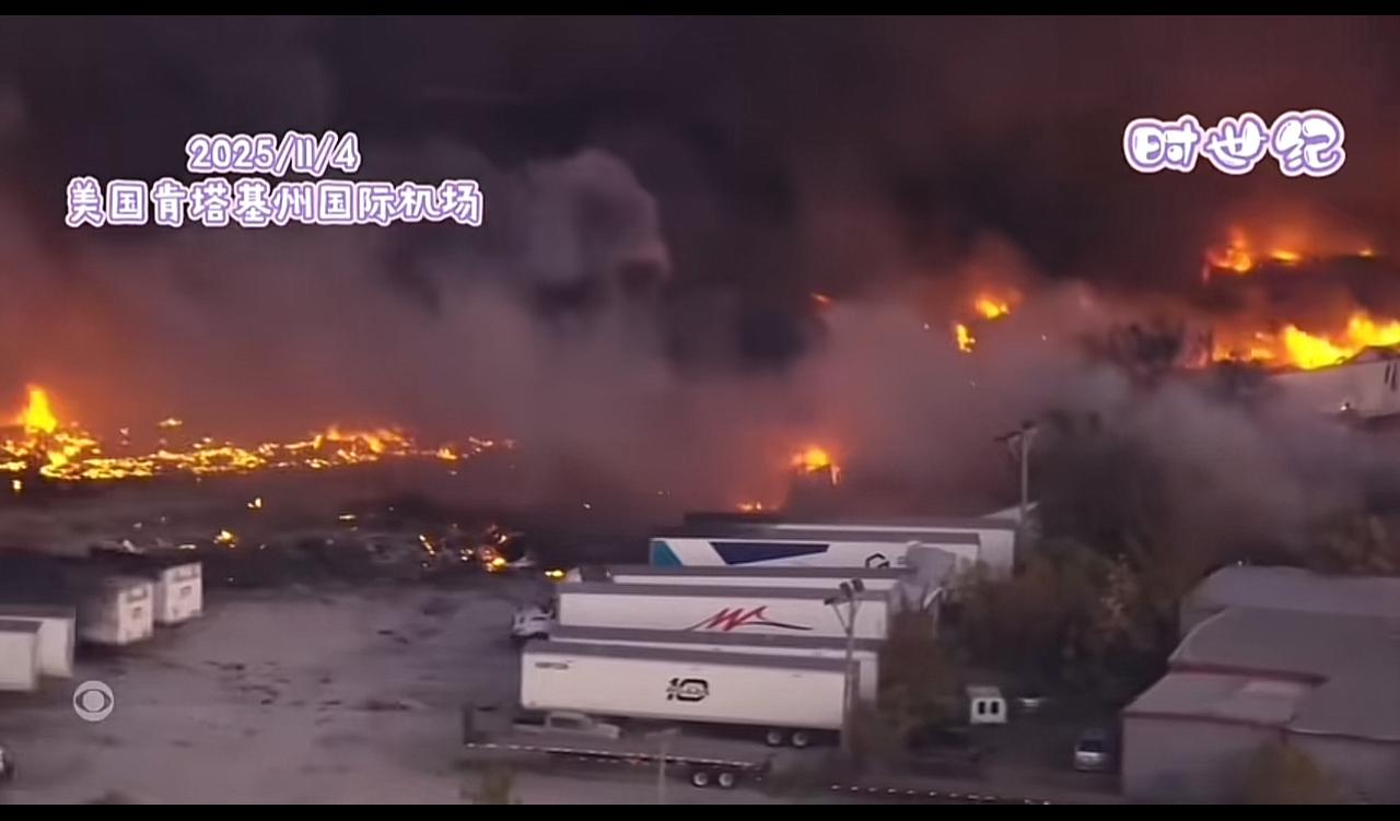 美国一货机坠毁,拉出一条1.6公里长的火路,场面惊人!