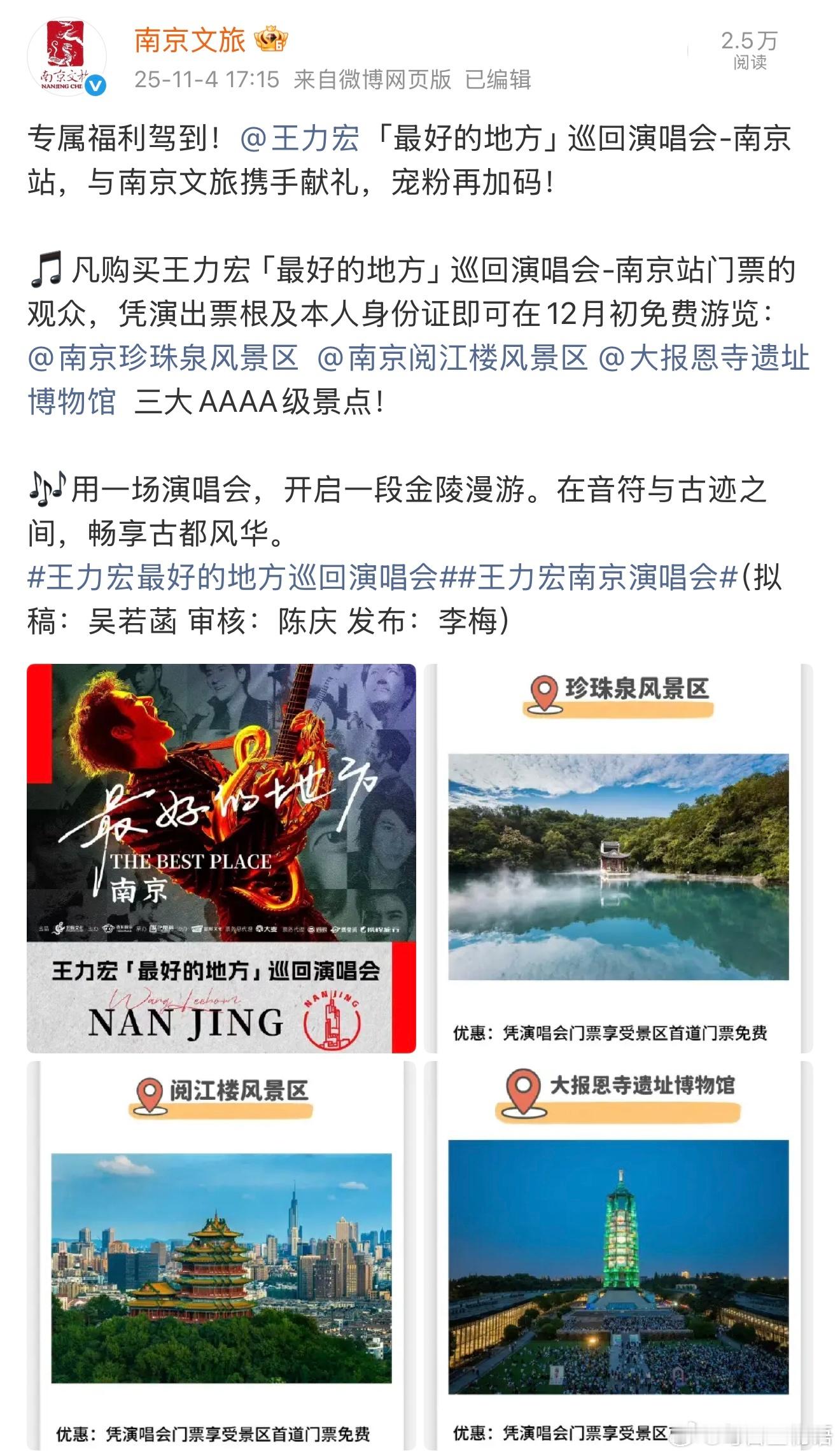 王力宏连宠粉都是老钱风 自带老钱质感的宠粉太圈粉!王力宏南京演唱会反向应援送景区福利,超绝live+顶级高音搭配3大4A景点免费游,深圳场更贴心请吃饭、全包吃喝玩乐,大方又低调,把老钱风照进追星日常~