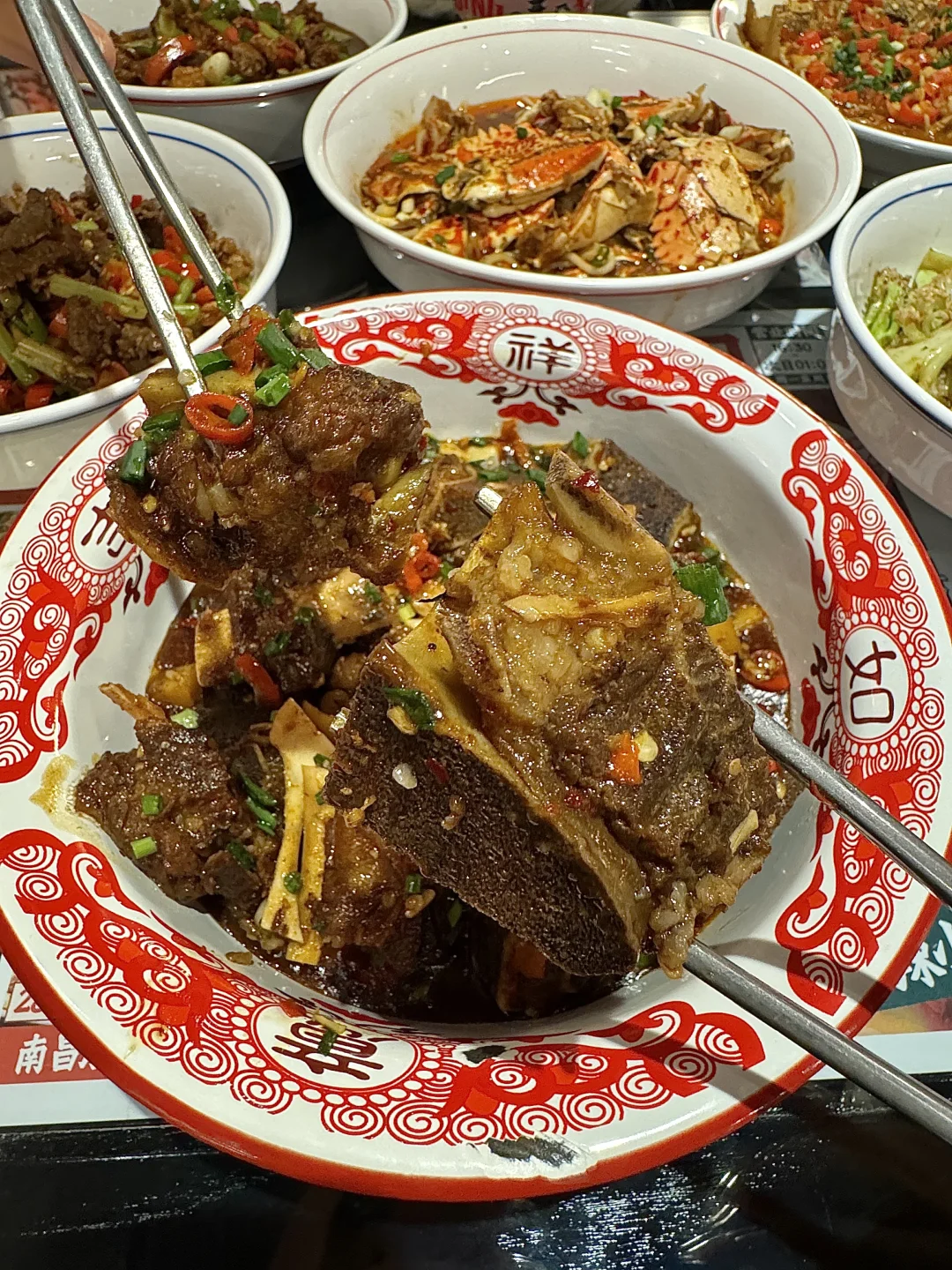 嘉定印象城新开的! 不夸张…我直接连炫三碗饭的程度😅 招牌蟹脚拌粉真的一绝!蟹脚肉超大块!汤汁一起拌一下,嗦粉根本停不下来……🥲 还有特色牛龙骨、香辣小黄鱼、火爆小炒鸡…香辣入味香迷糊了……☺️