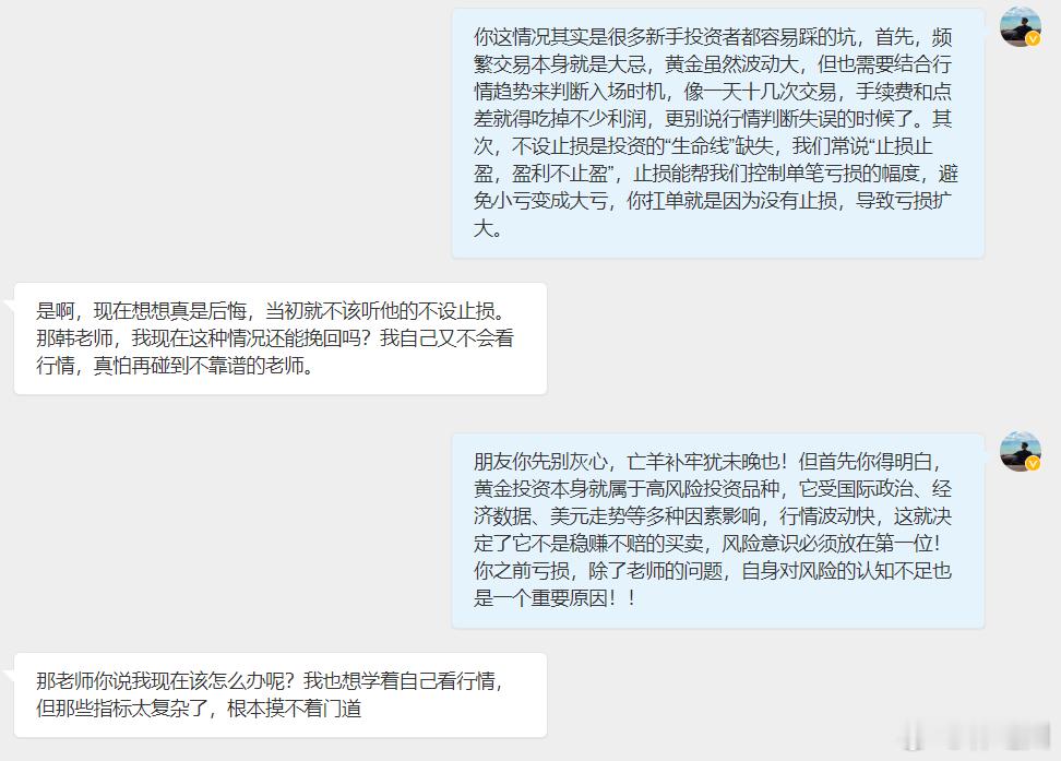 在这个市场上,像这位朋友的情况并不少见,能看到一部分人是一部分人,且引以为戒,其中首先,频繁交易是大忌,按此以往手续费和点差会吞噬利润,还易因行情判断失误扩大损失;其次,防守(止损)是投资 “生命线”,能控制单笔损失幅度,千万别听那些让你扛单不设防守的话!
