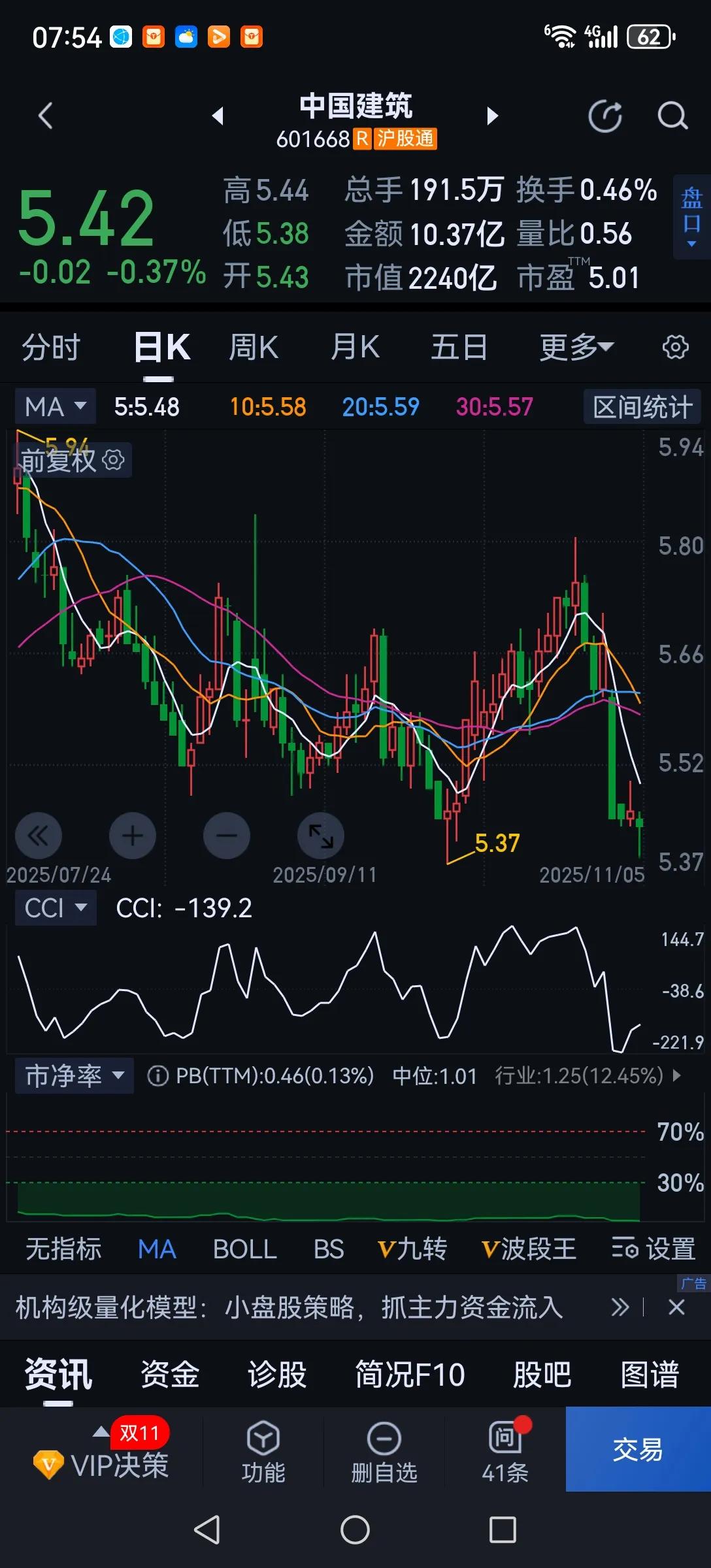 中国建筑?那是跟地产板块走的,等下游的房企起来后再说吧!