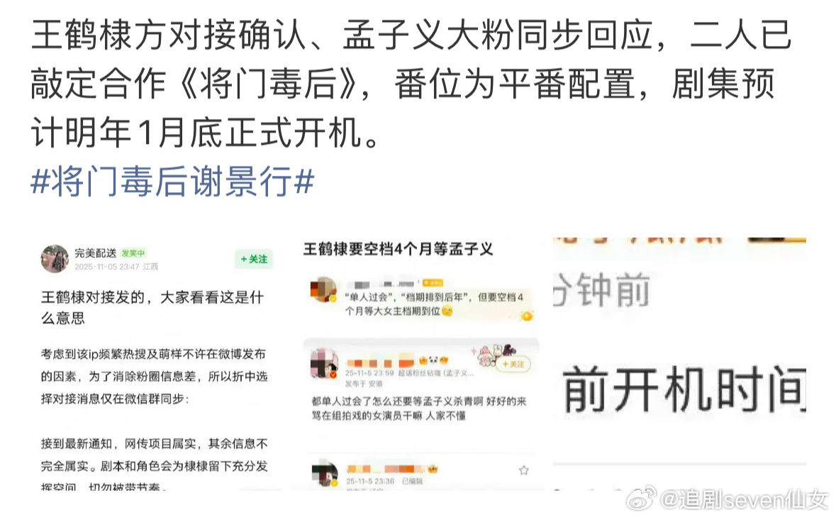 将门毒后真的在等孟子义档期4个月,开机时间对上了。孟子义这两年起来了,都在传这剧男女主平番
