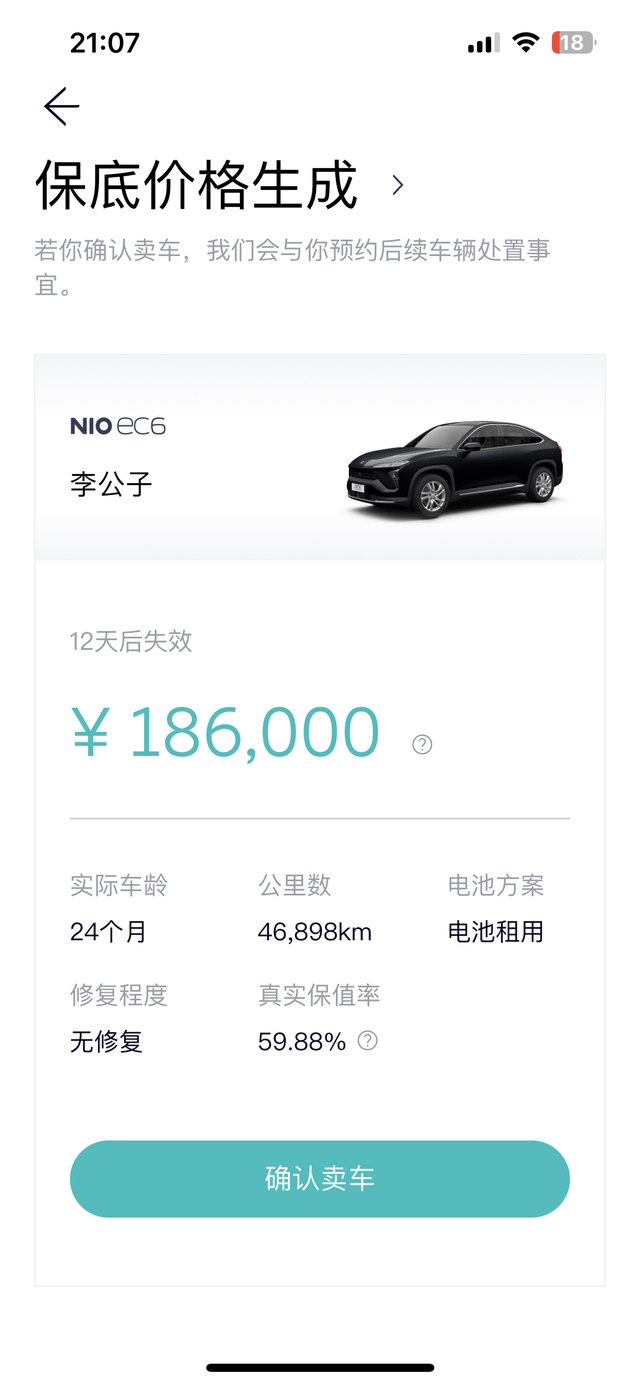 浅谈蔚来保值率 21年4.1号入手蔚来EC6、全程原版原漆、现在卖186000、保值率不到6折、当时号称保值率对标的BBA、太难看了、啪啪打脸,建议看好蔚来的千万不要选择Bass,不然卖都没法卖