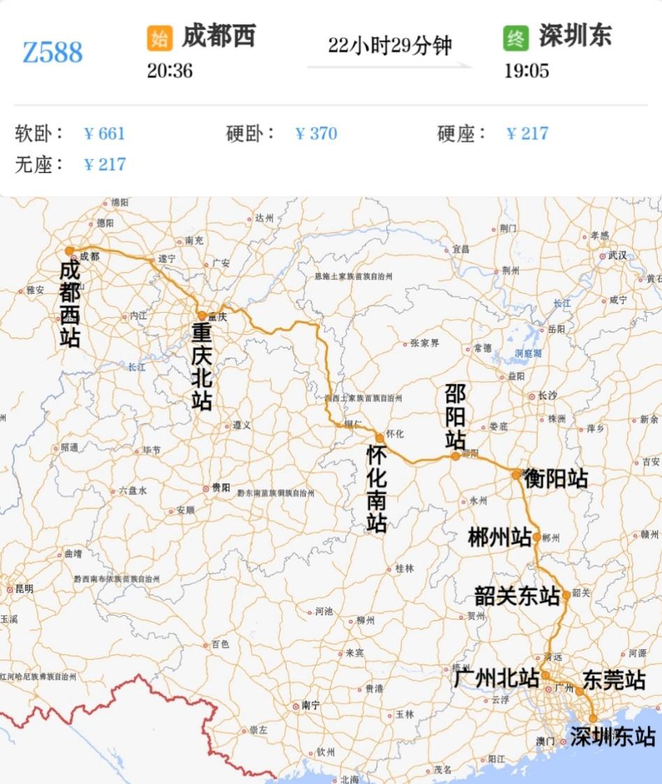 成都、重庆到广州、深圳仅有的两趟绿皮火车 成都西到深圳东Z334/Z331次 成都西到深圳东Z588/Z585次